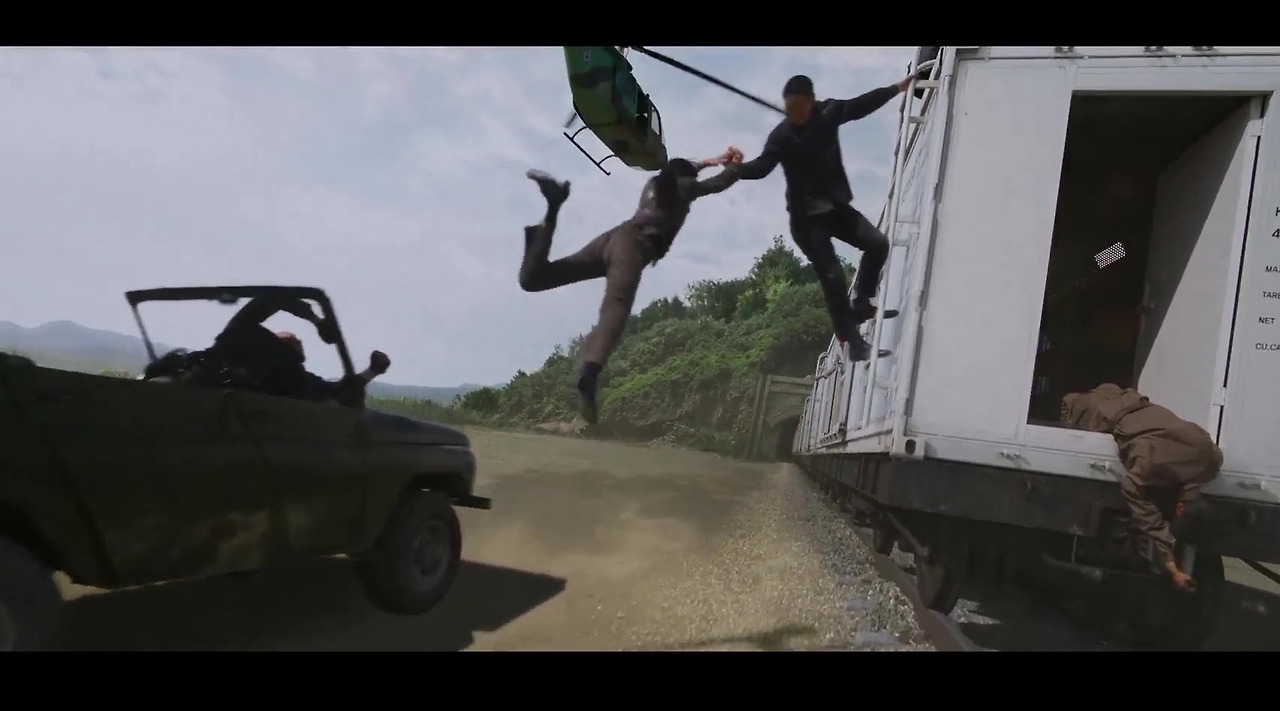 "북한의 붕괴 상황을 막을 수 있는 백신 및 치료제를 개발할 수 있는 유일한 항체 보유자"인 "정하나"를 스카이 다이빙 과정 중에서 구해내서 북한 땅 위의 돼지를 싣고 가는 트럭 위에 낙하산 착륙하는 씬은 그저 "게임 화면"이라 이해했을 때 부담 없이 넘어갈 수 있는 여러 장면 중에 하나다.