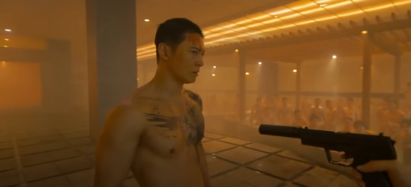 목욕탕에서 1대 100여 명 이상과 거의 다 벗은 상태에서 대결하는 중에 마치 "데드풀 2"에서 나왔던 목욕탕에서 "데드풀"이 수많은 야쿠자를 칼로 베어냈던 장면이 떠오를 정도로 거의 피해를 입지 않고 거의 대부분을 죽이거나 불능화 시키면서 초인적인 능력을 가진 요원임을 확실하게 드러내고 이 이후에도 거의 슈퍼 히어로급으로 보이는 액션신을 지속한다.