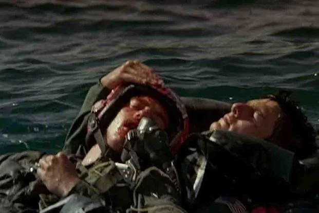 7) 절친이자 파트너인 "구스"가 사고로 죽게 되는 장면은 "적기인 미그기"가 나타난 상황에서 "탑 건" 중에 명실공히 1등으로서 앞서 가던 "아이스맨"보다 더 높은 공적을 세워서 1등을 하고자 했던 "매버릭"이 "아이스맨"이 탄 전투기가 미그기와 자신의 톰 캣 사이에서 요격을 시도하기 전에 방해가 된다며 자기 앞을 가리지 말고 나가라고 독촉한 뒤에 "아이스맨"이 빠져나가자마자 닥쳐온 제트 기류에 "매버릭"의 기체가 휘말리면서 추락하게 되었을 때, "매버릭"과 "구스"가 동시에 비상 탈출을 하는 과정에서 나왔다.