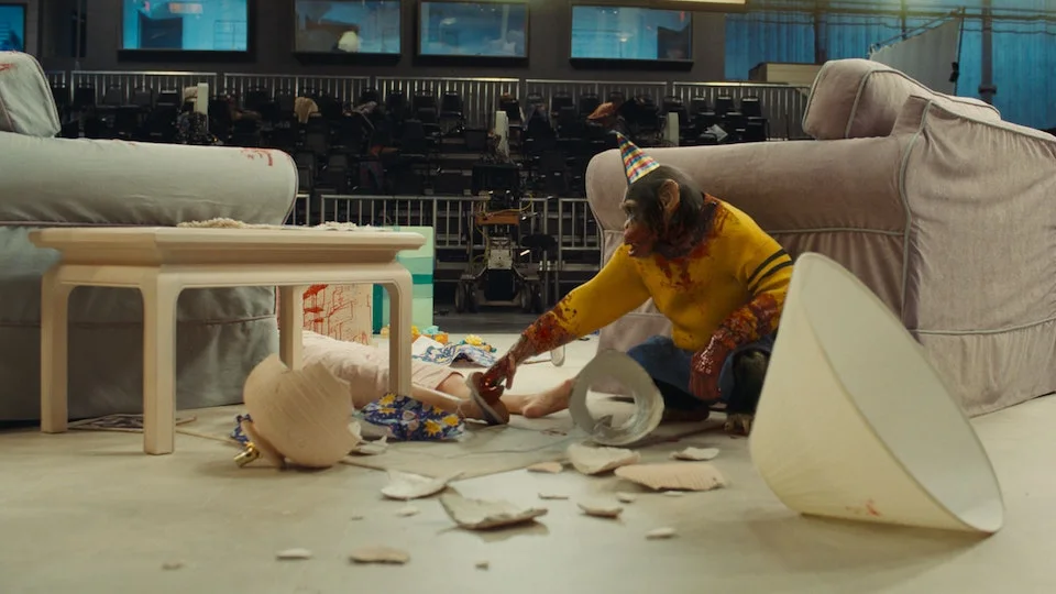 2. 고디 쇼에서 침팬지가 쇼 전체 참석자에게 폭력을 가했던 내용이 점프컷 등으로 나오면서 잔인하게 침팬지가 인간에게 폭력을 가했으리라 보이는 장면이 나오는 것이 생략된 것은 그만큼 관객으로 하여금 상상할 수 없을 정도로 잔인한 일이 벌어졌다는 것을 보여주려고 하는 것이었겠지만 이후에 정체불명의 포식 생명체의 내부로 수많은 인간이 들어가 소화되는 장면이 나오는 것도 보여주었던 감독이 그것을 점프컷 처리했을 이유가 충분히 있었을까?라는 의문이 들게 만들었다.