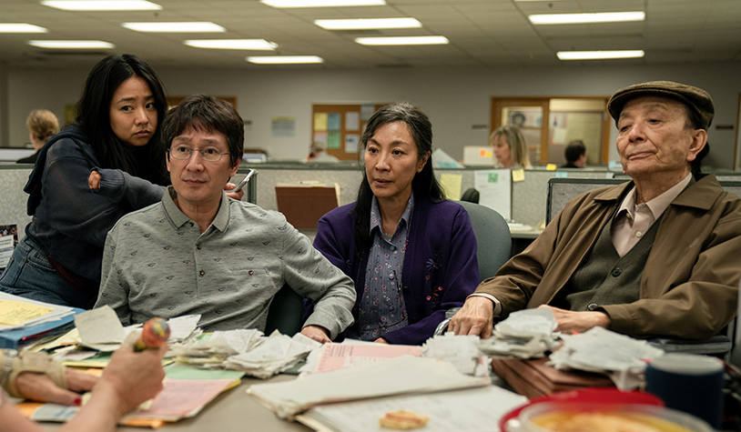 스토리는 얼핏 복잡 다단하고 혼란스럽기 그지없으나 결국 관객의 관심을 끌어들이는 핵심은 수많은 다중 세계의 어디엔가 영화 속의 주인공이자 그 어떤 방향으로도 성공하거나 특출한 수준으로 나아가지 못한 "에블린 왕"이라는 미국에서 "코인 세탁소"를 운영하면서 지지고 볶는 좁은 아파트에서 살고 있는 "생활인"의 삶이 실상 다른 다중 세계 속에서 수없이 다른 양상으로 살아가고 있는 모습으로 스피디하게 그려지면서 순간순간 관객과 시청자의 감정을 이입시키도록 만드는 정신없으면서도 집중력을 잃지 않는 독특한 전개에 있다.