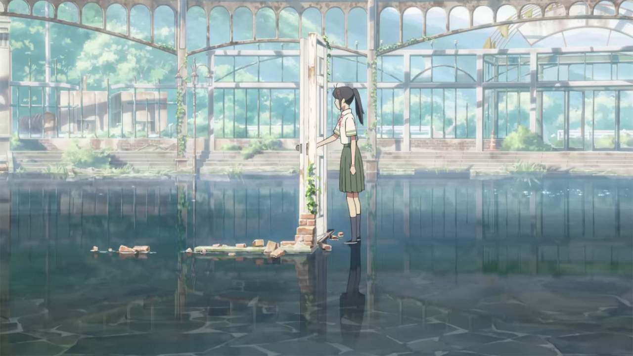 사건이 거대한 문제와 맞닿는 초반의 이야기는 일본 밖에서 살아온 관객이 그 역사를 일일이 잘 알 수는 없지만, 원래는 주민이 많은 곳이었겠지만 폐허로 변한 마을에 들어가 있을 "쇼타"를 찾아 그에게 한눈에 반한 "스즈메"가 "잘 생기신 분"하고 외치며 돌아다닐 때 그 폐허의 물이 고여 있는 분수대 같은 장소의 가운데에서 덜렁 문만 세워져 있음을 발견하고 이를 무심결에 여는 데서부터 시작된다.