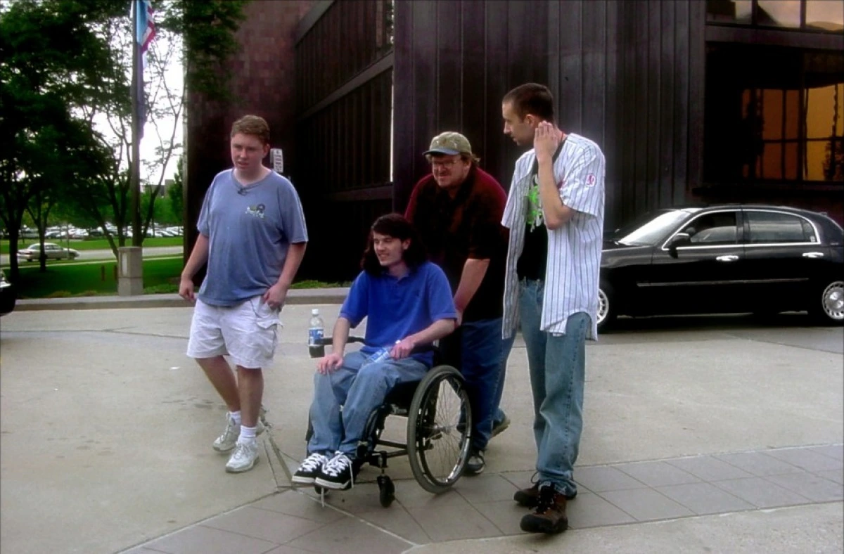 그리고, 마이클 무어는 찰톤 헤스톤 앞에,