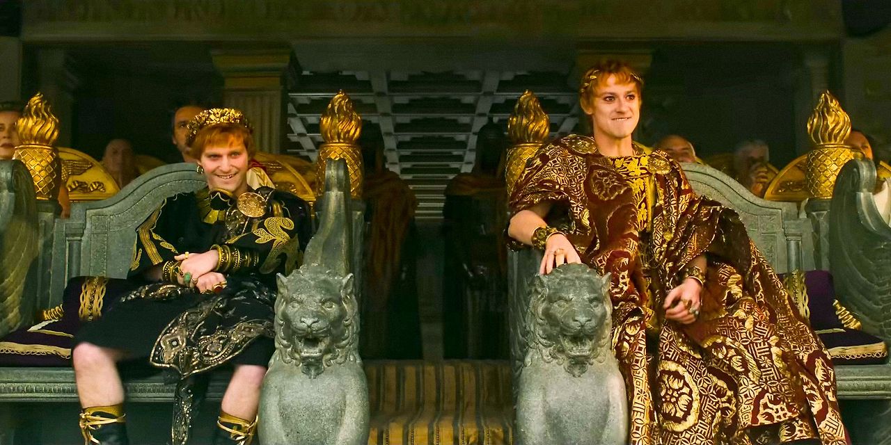 그러다 보니 전작의 정신분열적 충동을 느끼는 가학적인 "콤모두스"를 대치해서 "로마인"의 타락과 종말로 부추기는 폭정과 압제를 하며 외부 국가에 대한 끊임없는 전쟁과 약탈에 목마른 쌍둥이 황제인 "카라칼라"와 "겟타"의 모습은 공식적인 빌런이 둘로 늘어났음에도 감정을 자극하는 정도가 더 떨어지고 "러셀 크로우"의 "막시무스"를 대치한 "폴 메스칼"의 "(하노이자) 루시우스 ~막시무스"와 "페드로 파스칼"이 둔중하게 연기한 "아카시우스 장군"의 존재감도 전작을 넘어서진 못하는 게 보인다.