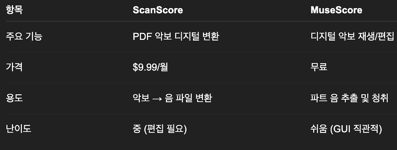 파트 음 따로 추출이 필요해서 ScanScore(유료) + MuseScore(무료) 조합으로 해결 시도.