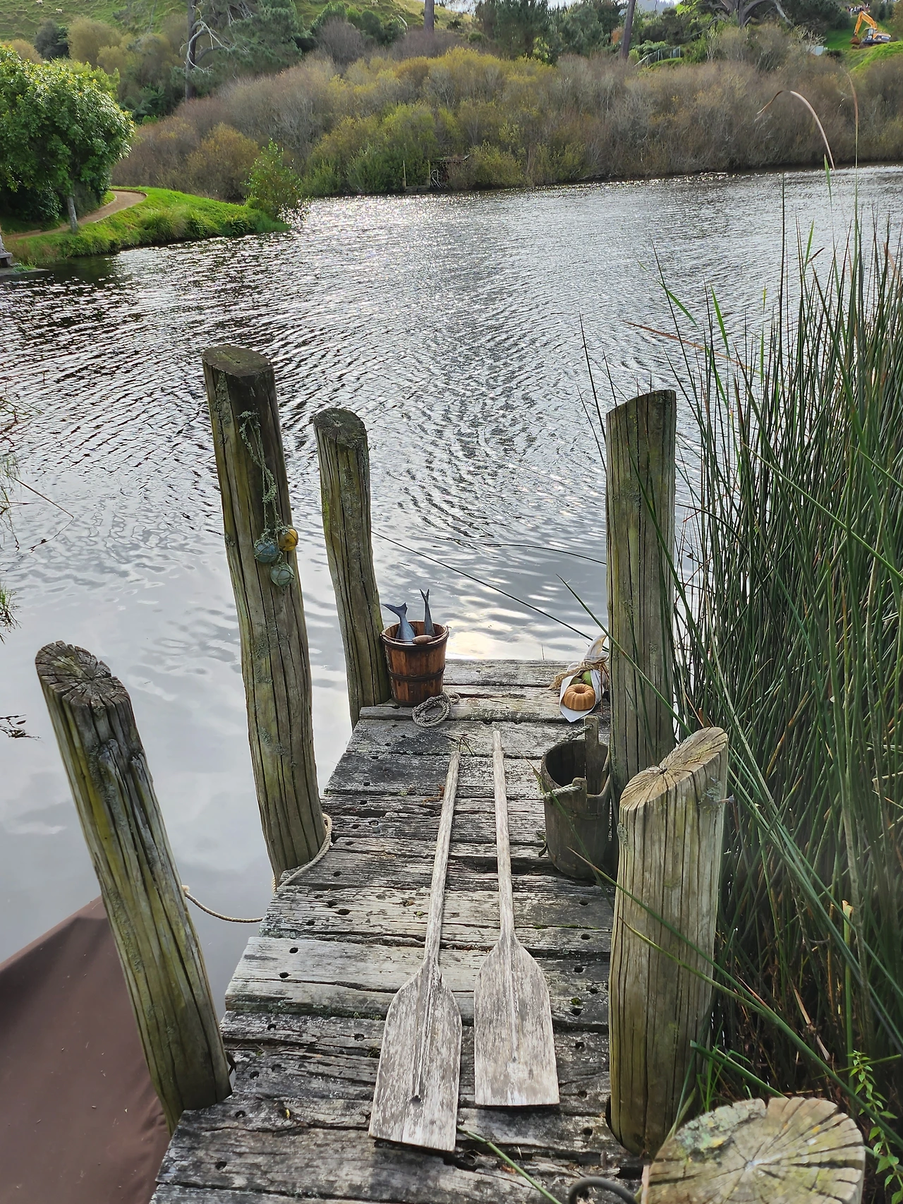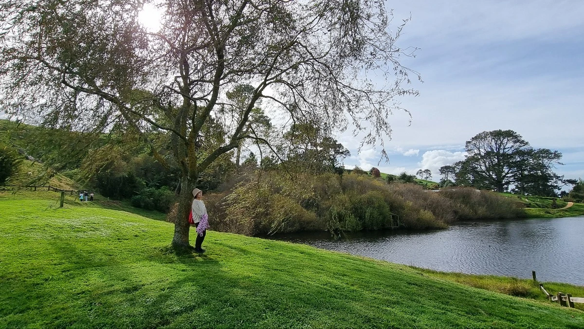 호숫가에는 호빗들이 낚시를 했을 거로 추측되는 조그만 낚시터가 실감나게 꾸며져 있다. 꼬마가 생선모양의 가짜고기를 가리키며 "피시"라고 한다. 파티필드는 영화 속에서 불을 붙이자 텐트가 하늘로 솟구쳤던 곳인데 지금은 호빗들이 가지고 놀았다는 놀이기구만 있다. 영화 촬영지의 의미를 담아 한 번씩 체험하게 하는 게 더 재미있을 것 같은데 그것은 내 생각일 뿐, 아쉽다.