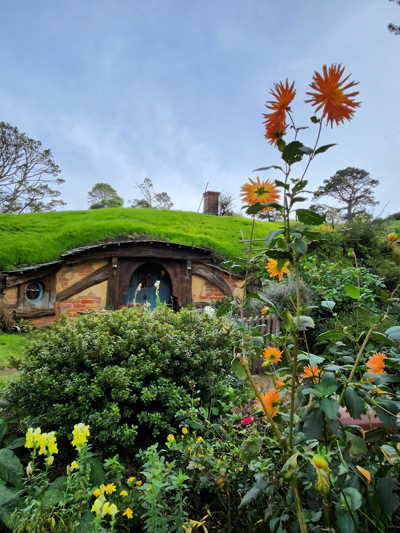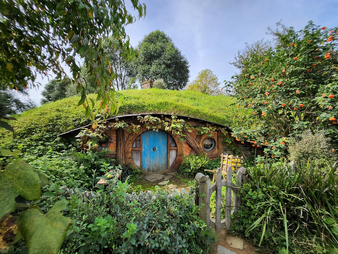 입구에 들어서니 반지의 제왕에 나오는 간달프와 프로도가 마차를 타고 간 언덕이 나온다. 지금은 마차는 없지만 어디선가 달려 나올 것 같은 분위기다. 단순히 경사진 길이 나오니 나머지는 영화를 상상해서 기억해 내는 거로. 작은 체구의 호빗들이 살았던 토굴집은 자연과 어울려 그냥 예쁘다. 호빗이 살았다는 토굴의 둥그런 문에서 호빗이 나오길 바라지만 투어는 작은 집 앞에서 긴 설명만 듣고 사람들은 열 수 없는 집 앞에서 호빗처럼 포옴만 잡은다. 영화장면처럼 멋지게 찍어본다. 작은 집의 뜰에는 백일홍이 피어 있고 조그만 텃밭에는 우리네 텃밭처럼 낯익은 무랑 양상추등 채소들이 심어져 있다. 호빗들이 입었을것 같은 작은 옷까지 빨랫줄에 걸어두는 센스! 바람에 팔랑거리니 한폭의 영화장면이다. 별거 아닌거에 감동한다.