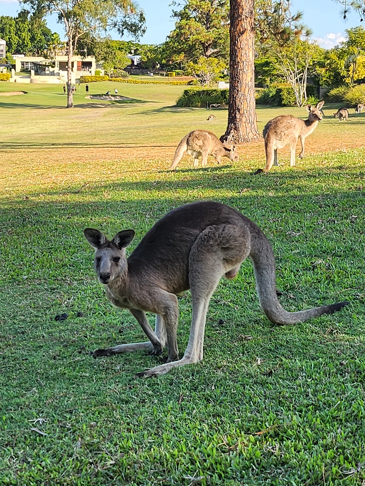 하루 전에 예약도 가능하다. 거기에다 캥거루까지 보게 될 줄이야. 골프장에는 캥거루들이 워낙 많아 골프를 즐기는 사람들은 무관심이다. 우리만 이들을 보느라 골프는 후순위로 밀렸다. 녀석들은 공에 맞을지도 모르는데 한가로이 풀을 뜯다가 쳐다본다. 덩치는 큰데도 귀엽다. 골프를 치는 홀마다 녀석들이 갤러리가 되어 준다. 이들이 풀을 뜯어먹으니 잔디를 깎을 필요도 없고 농약도 하지 않아 친환경 골프장인 셈이다. 캥거루의 동글동글한 분비물을 밟은 일 빼고는 신기하고 재미난 체험이다.