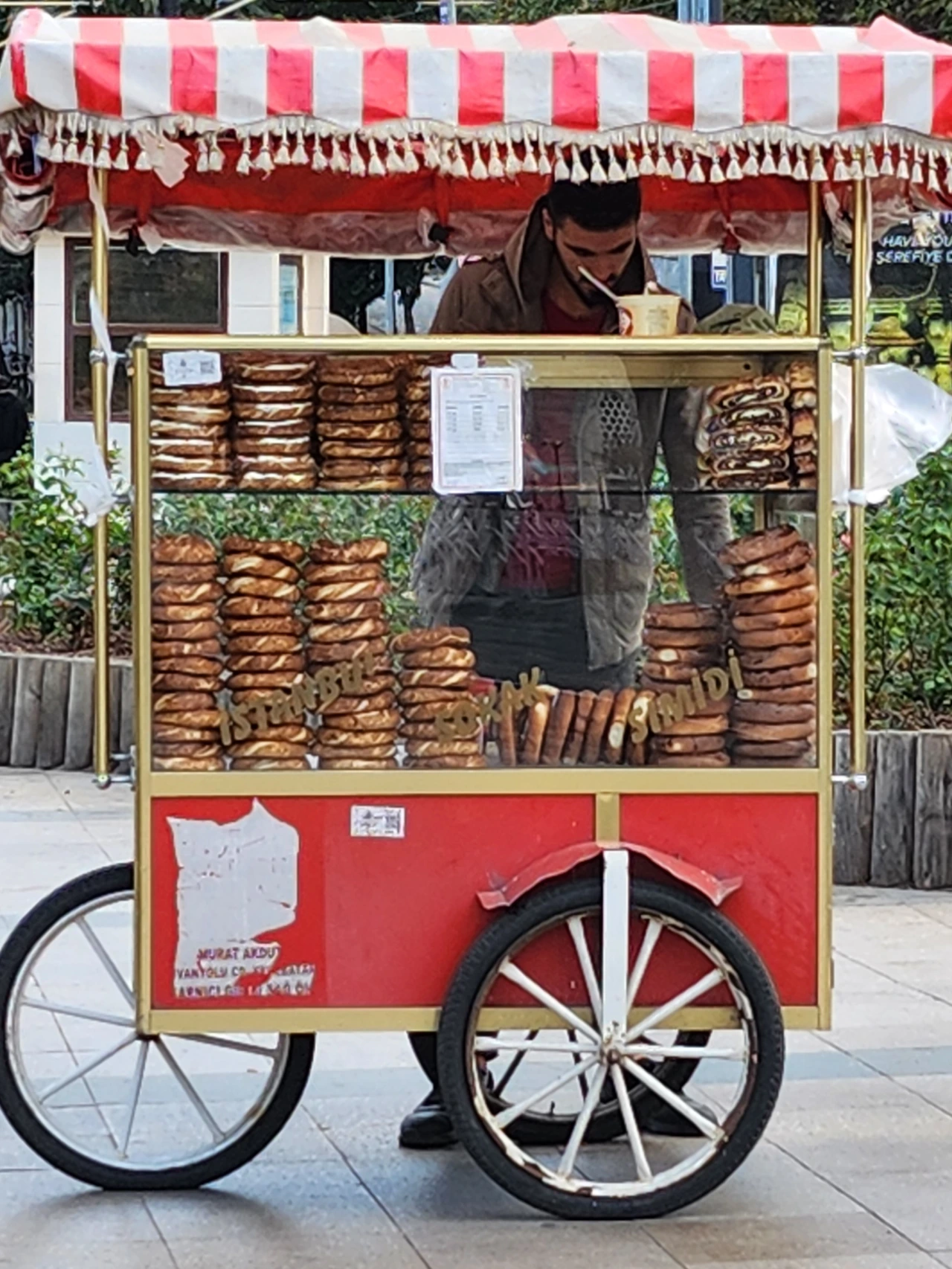 이스탄불 명소마다 빨간 수레가 자주 보인다. 수레 위에 이곳의 최애 동그라미 빵인 슈미츠가 가득하다. 슈미츠는 식사를 대신할 만큼 크고 맛 또한 은근히 고소하다. 슈미츠에 박혀있는 깨알들이 한 입 베어 물때마다 고소하게 터지면서 뱃속은 포만감으로 둥글게 채워진다. 슈미츠는 여행자가 끼니를 해결하기 어려울 때 벤치에 앉아 톡톡 뜯어먹기가 좋다. 우리의 붕어빵도 길거리 음식에서 으뜸이던 시절이 있었다.