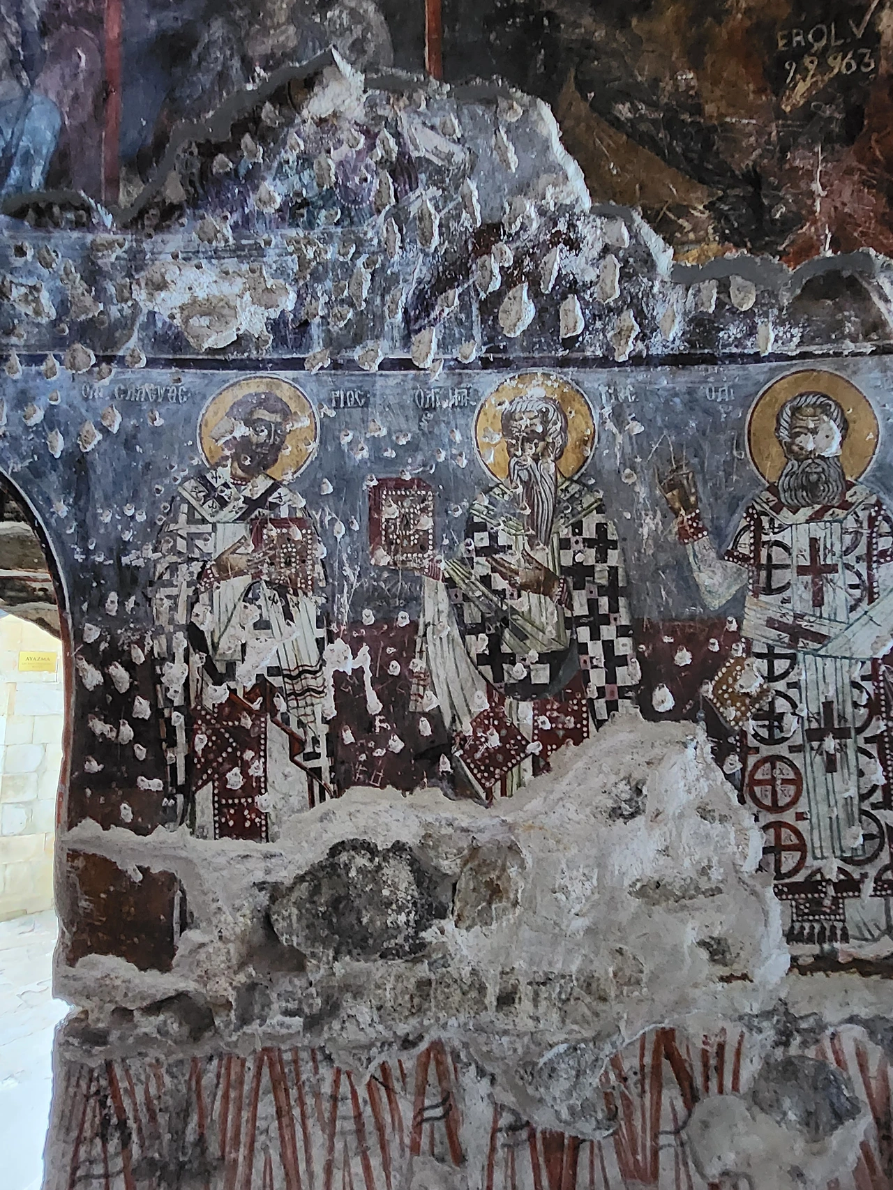가장 안타까운 것은 성화 벽화가 벗겨지고 찢겨 있다. 이슬람교의 기독교에 대한 이질감이 적대적으로 표현되어 훼손을 한 것이다. 비록 그림이지만 수도 없이 망치 같은 것으로 찍힌 자국은 잔인하기까지 하다. 한참을 아픈 상처의 그림을 바라보며 마음이 아파옴을 느끼며 속상했다.