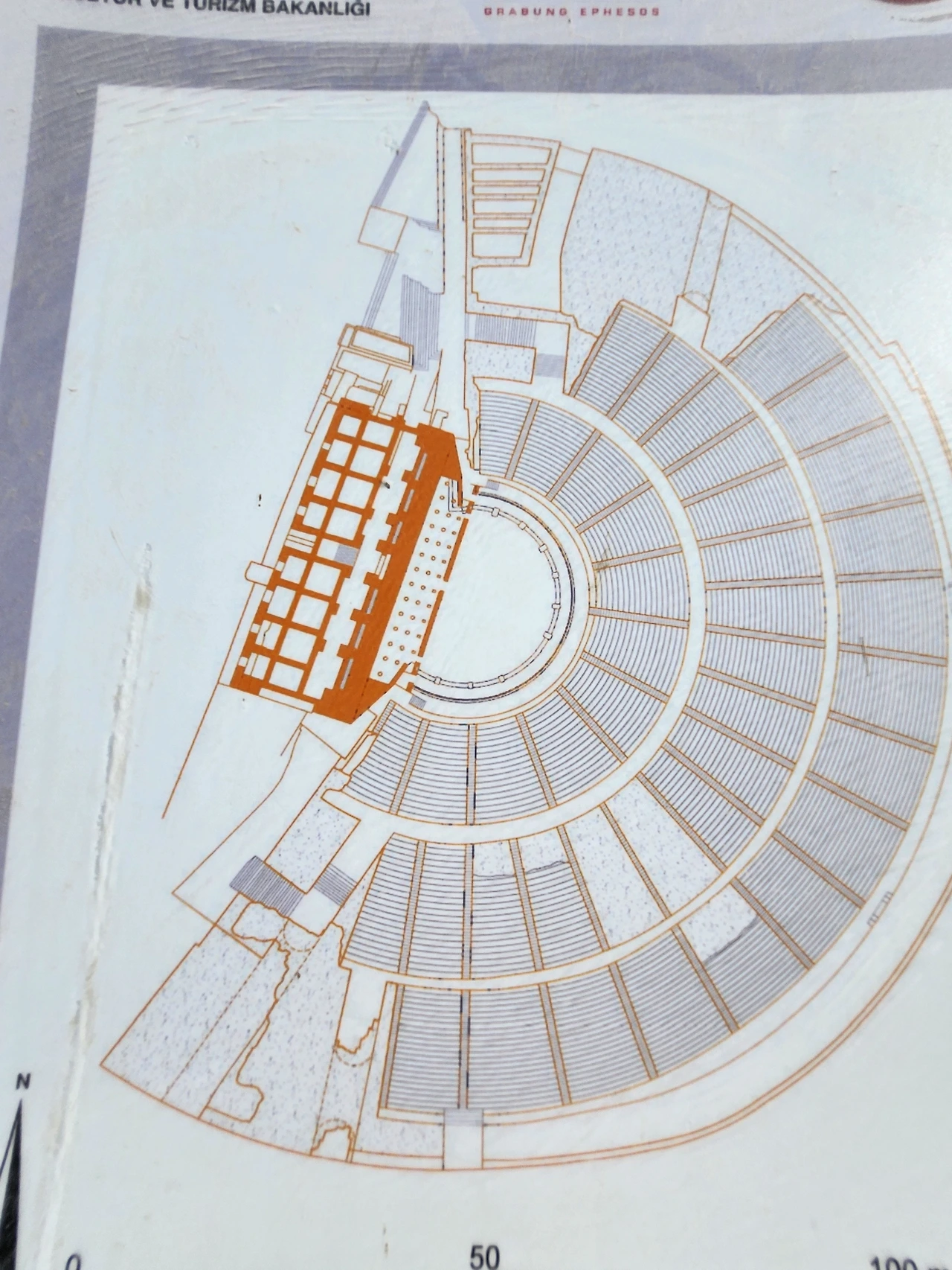 대극장은 원형극장으로 그 규모가 상당하다. 설에 의하면, 60년 간 산을 파서 만들었다고 한다. 극장은 연극이나 검투경기 또는 회의장으로 사용하였다고 한다. 25,000명을 수용할 수 있는 대규모이다. 성경에 의하면, 사도바울이 이곳에서 우상을 숭배하지 말라는 설교를 하다가 황제의 조각품을 판매하는 상인과 마찰이 일어나 결국에 제자들과 추방당한 곳이기도 하다.