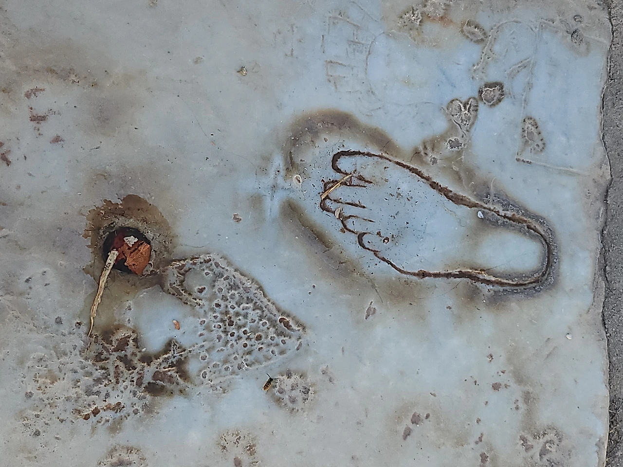 어라? 여자의 상반신 얼굴 모습과 하트 표시까지 보인다. 그 시대의 유곽을 갈 때 발바닥 사이즈로 성인을 구분한 표시라니. 재미있다.