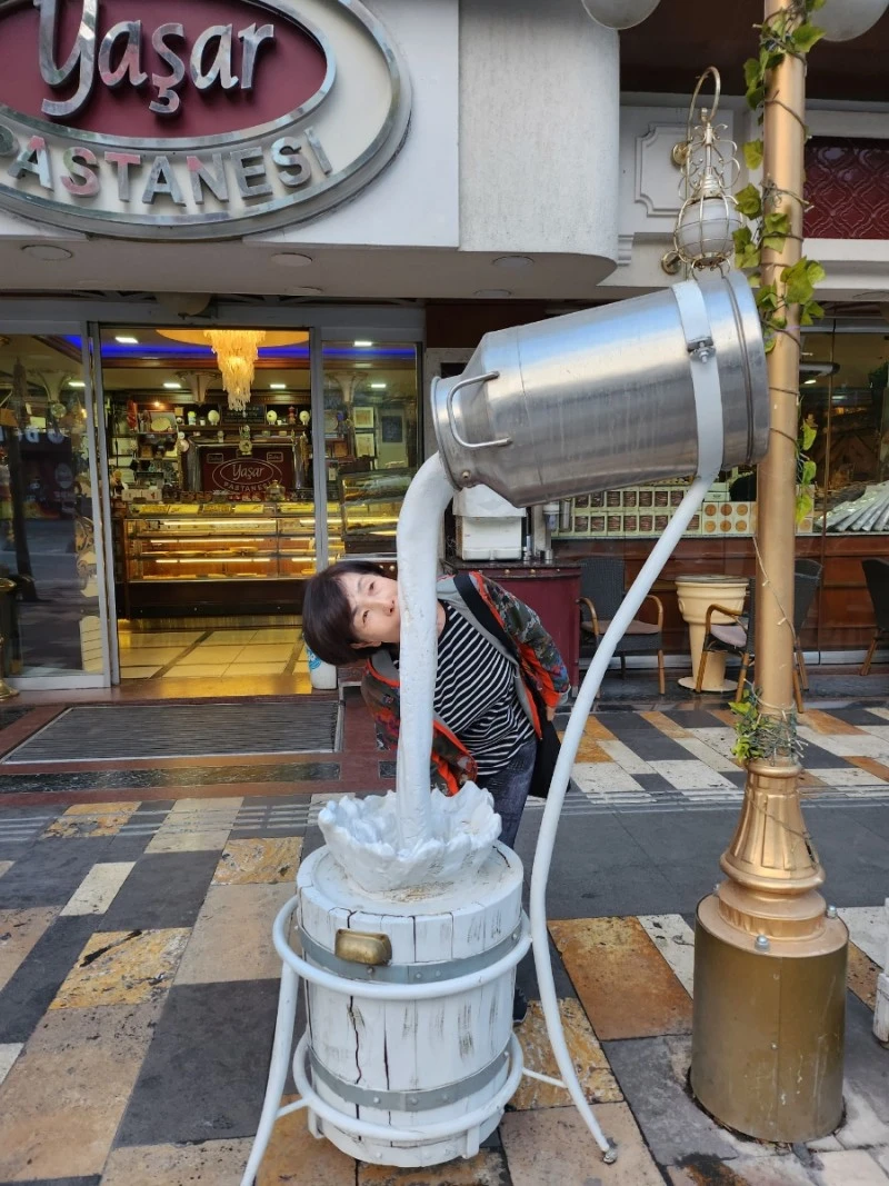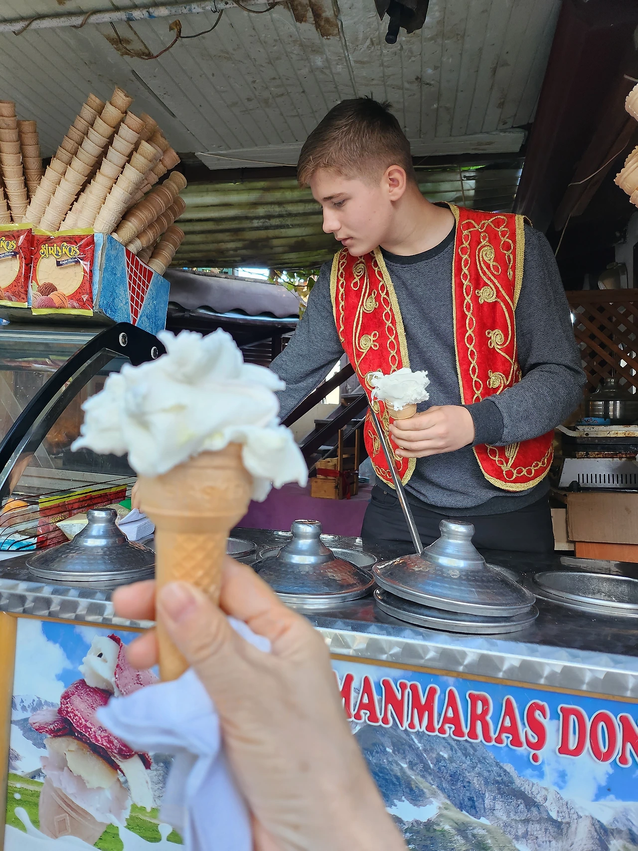 "하하하" 주변의 사람들도 유쾌하다. 그는 민망해하는 내게 공손하게 콘을 안긴다. 사람들이 줄줄이 기다리고 있다. 여행 내내 돈두르마 묘기 대행진은 계절 구분 없이 튀르키예 관광지 어디서나 볼 수 있다. 가게 주인이 펼치는 퍼포먼스는 조금씩 다르나 여행객들의 실수가 더 재미있다.