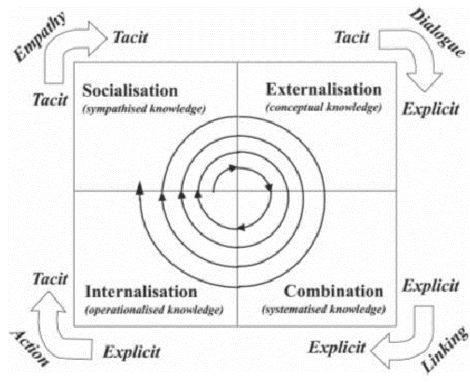 이러한 과정에 노나카 타케우치 SECI 모형을 참고할 수도 있다. 조직에서 지식이 탄생하는 시스템을 모델화 한 것으로 암묵지와 형식지의 4가지 지식 변환 과정이 지속적으로 상호 순환하면서 나선형으로 변화해간다는 내용이다.
