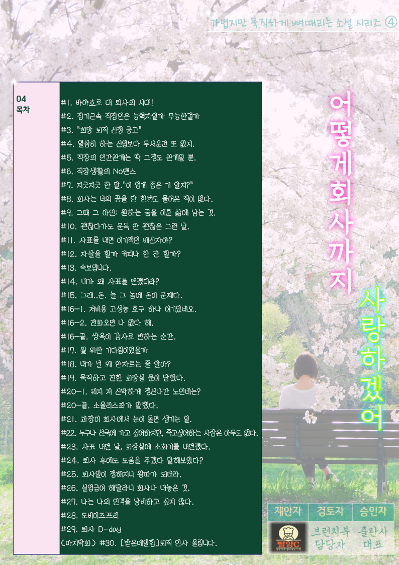 " 우리 업계만 쓰레기지..? 전염병은 우리 회사만 노린 건가 망할.." 이렇게 말하는 아인은 그래도 운이 좋은가보다 했다. 그의 자리는 매일 아침 그에게 앉을 수 있는 온전한 하루를 선사했으므로.