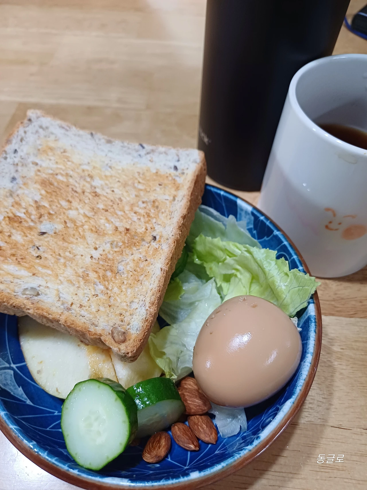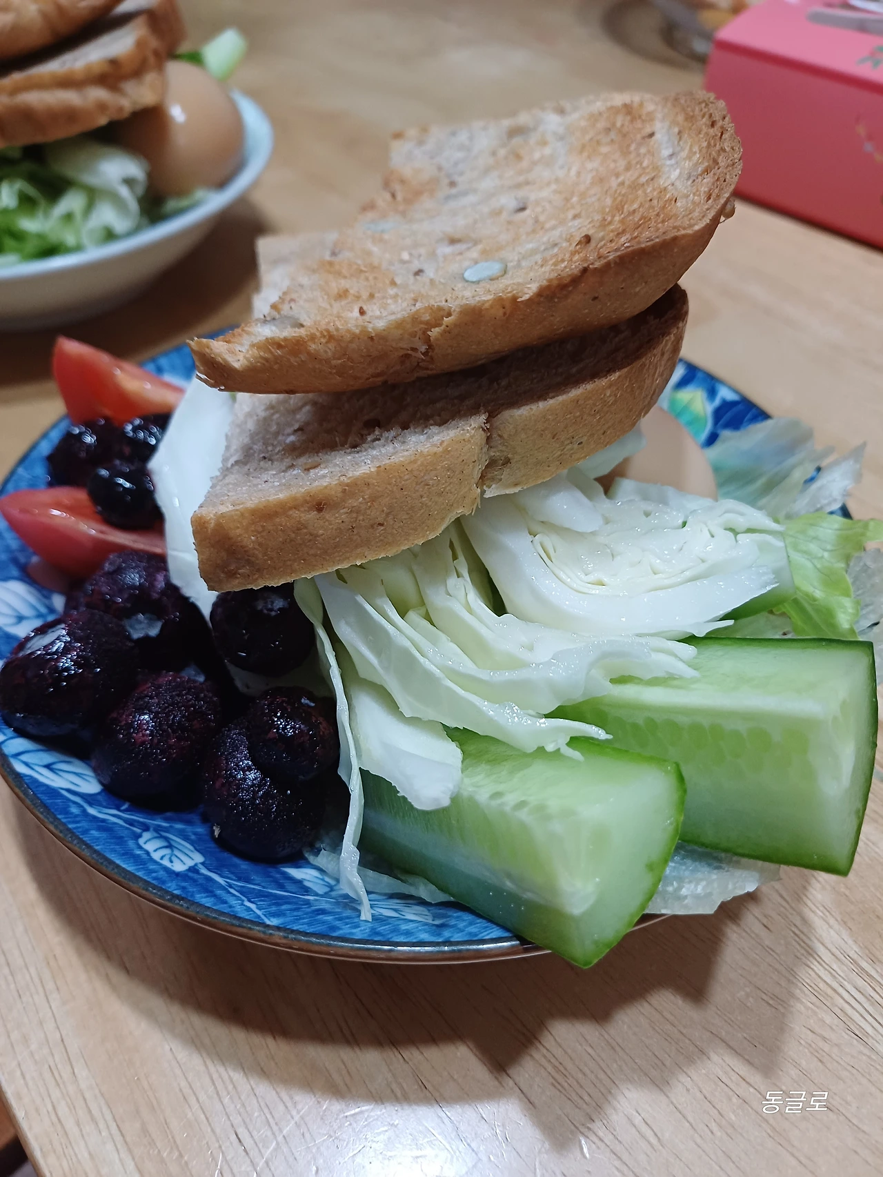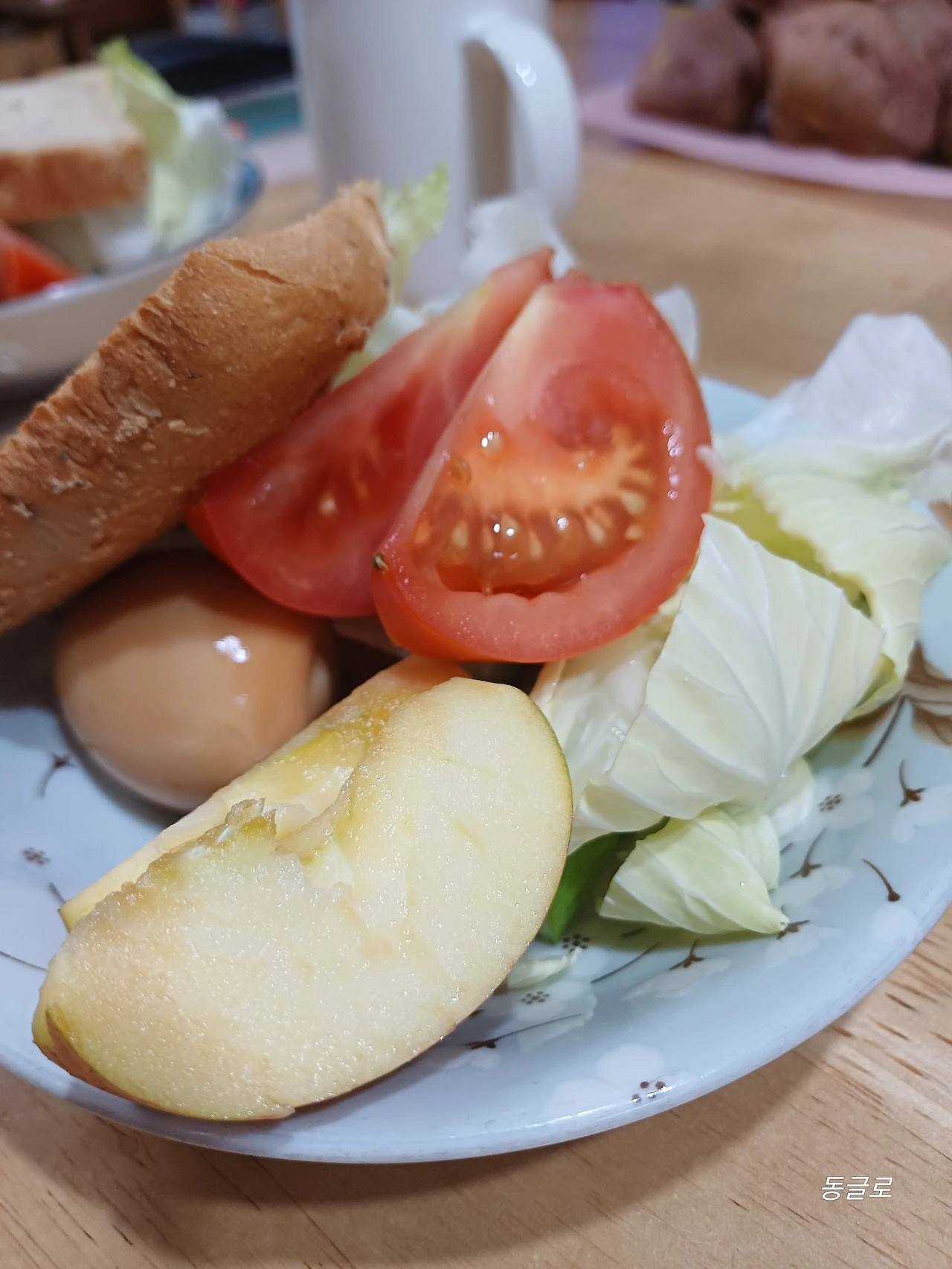 샐러드는? 그렇지 않았다. 채소와 과일은 꼭꼭 씹어먹어야 했다. 빵은 통밀빵이라 기존의 달콤하고 쉽게 넘어가는 빵과 달랐다. 스르르 녹지 않는 빵. 계란을 삶거나 훈제계란을 두 판씩 사두고 계란도 하나씩 까주었다.