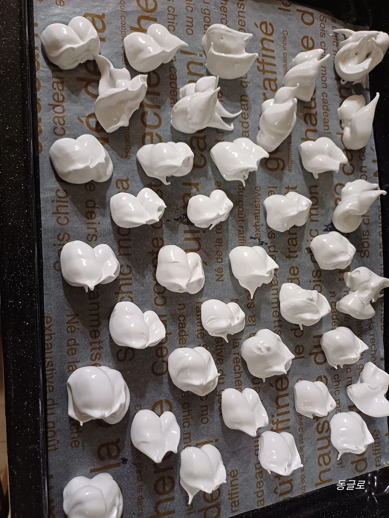 크리스마스 선물로 친구들에게 줄 거라며 하루종일 거품을 내어 만들었던 머랭과 쿠키들이 식탁 위에 열 지어 있기도 했다. 그중에 하나는 엄마, 하나는 아빠의 선물이다.