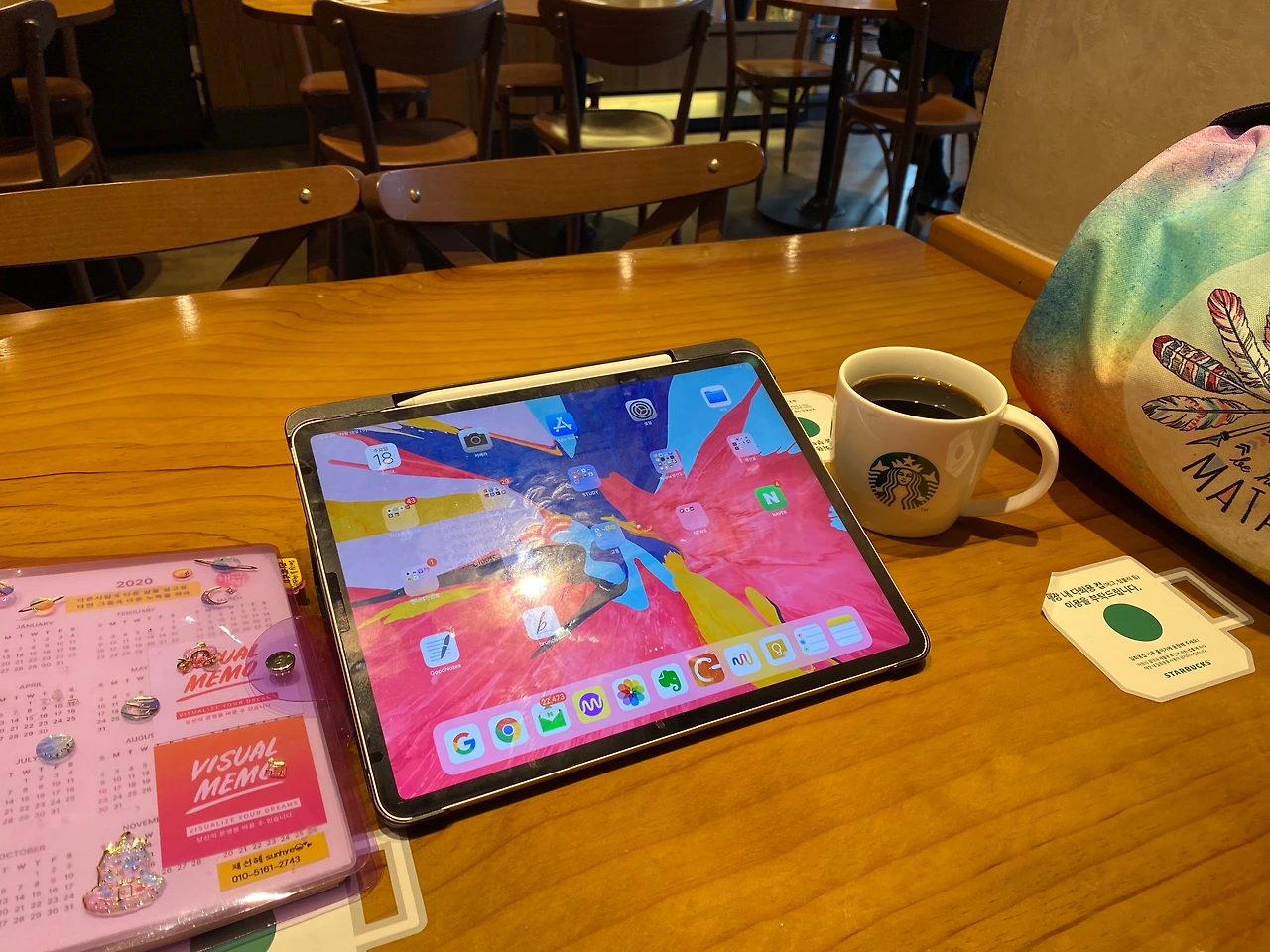 아주 잠시라도 끄적거리면서 하루를 충전하는 그 행위자체가 나에겐 힐링인 것이다. 스타벅스의 아침은 활기차다. 출근전에 자기일을 하는 사람들과 테이크아웃으로 사무실에 커피를 사들고 가려는 사람들이 종종 들어온다. 종로에는 여행자들도 꽤 있어서 외국인들도 가끔 보인다. 직원들은 활기에찬 미소로 항상 손님들을 맞이하고 나는 아무도 없는 것처럼 나만의 공간이라고 생각하면서 나만의 일들에 집중한다. 1시간정도의 시간이지만 많은 것들을 할 수 있다. 이 시간만큼은 나에게 하루중 제일 소중한 시간이다. 내가 정말 좋아하는 일들을 하면서 행복을 느낀다. 나에게는 항상 구비하는 각각의 아아템들이 있다. 에어팟,책,다이어리,필통,파우치,아이패드,노트북 까지 나는 항상 짐이 많다. 하나라도 갖고 다니지 않으면 안된다. 다 나에게 힘을 주는 소중한 물건들이기 때문이다. 나는 옷이나 가방을 사는 것보다 각종 문구류나 책들을 사는게 더 행복하다.