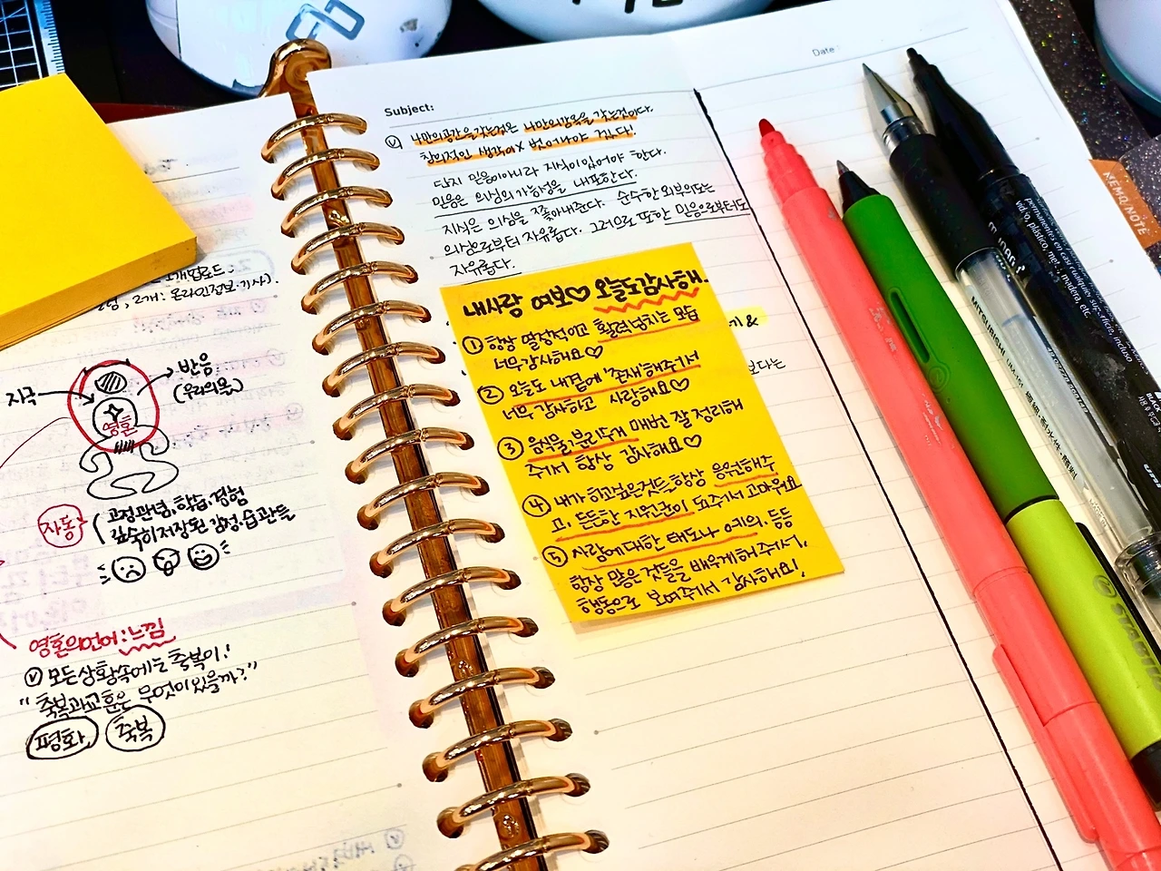 "감사해" "사랑해" 별거아닌 이 세글자가 인생을 더 풍요롭게 만들어 줄 것이다. 감사한 것들을 메모해 나가다 보면 사랑하는 사람을 더 자세히 생각해보게 된다. 이전에는 눈에 보이지 않던 것들, 그냥 지나칠 수 있었던 매우 일상적이고 디테일한 감사한 행동들 까지 점점 눈에 보이게 된다. 우리집은 남편이 음식물과 분리수거 담당인데 결혼할때부터 지금까지 1년넘게 항상 지켜준 남편에게 감사하다는 생각을 최근들어 하게되었다. 지금까지는 그냥 너무 일상이 되어버려서 익숙함에 속아 당연한 것이 되어버렸기 때문이다. 당연한 것들을 감사하게 되면 세상에는 감사할 것들이 무수히 넘쳐난다.
