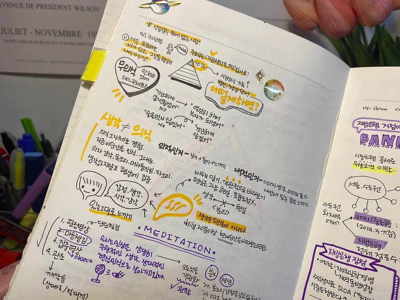 이상하게 분명히 책을 읽었는데 대충 기억이 나는듯 안 나는듯 다시 읽어봐야겠다고 책상위에 올려 놓는다. 하지만 이미 읽은 책이기도 하고, 또 새로운 신간들이 나왔으니 읽고 싶은게 너무많아 손이 잘 안간다. 문득 책을 읽다가 끄적끄적 메모해둔 노트를 3분만 들춰본다면, 전체적인 내용들이 다시 새록새록 떠오를 수가 있다. 곰곰히 생각해 보면 책의 제목과 저자, 내용요약이 얼마나 중요할까? 더 중요한 것은 책 내용 안에서 얻어낼 수 있는 교훈이나 지식들, 깨달음이다. 단순히 책 제목과 함께 '이런내용이였지~ 이런내용이였지~' 라는 생각만으로 끝내는 것이 아니라, 책 제목이나 저자는 기억이 안나더라도 그때 남겨놓은 메모를 통해 교훈과 단상들, 깨달음과 실행방안을 다시한번 알아차리고 느낄 수 있다면 성공한 독서가 아닐까 생각해 본다. 물론 에세이나 소설, 시 등의 특정 장르는 전체적으로 읽으며 저자의 문체 그대로를 느끼고 만끽하는 게 더 중요하다. 다양한 책들을 읽다가 너무너무 좋아서 오랫동안 기억하고 싶은 문구나 내용들은 디지털메모로 저장해놓기도 한다. 단순히 요약해서 공부하고싶은 내용이 있어도 디지털메모로 요약하여 저장해놓으면 좋다. 하지만 더욱 자세히 기억하고 싶고 디테일 하게 이해하고 싶은 내용이 있다면 손으로 끄적여 본다. 내 마음대로 끄적여 놓은 한장의 메모가 내 인생을 변화시켜줄 수 있었던 역사적인 도구가 될 수도 있다.