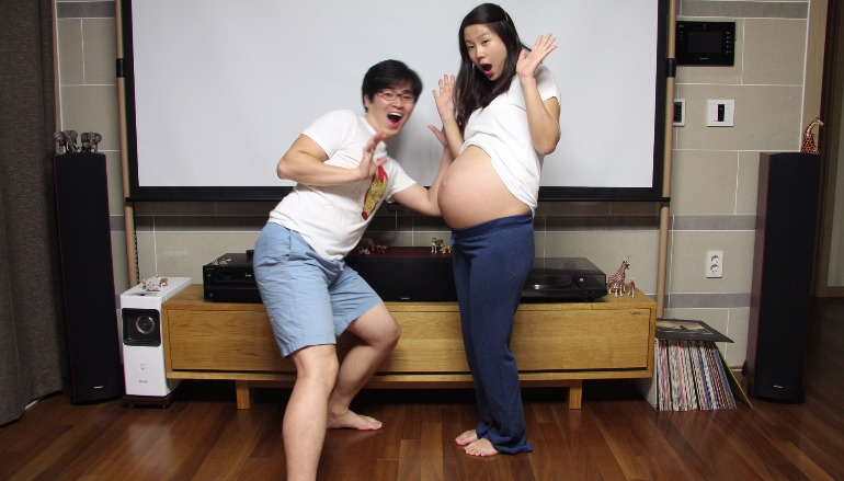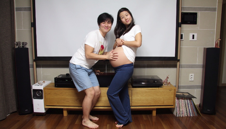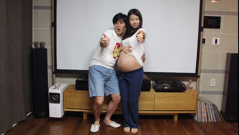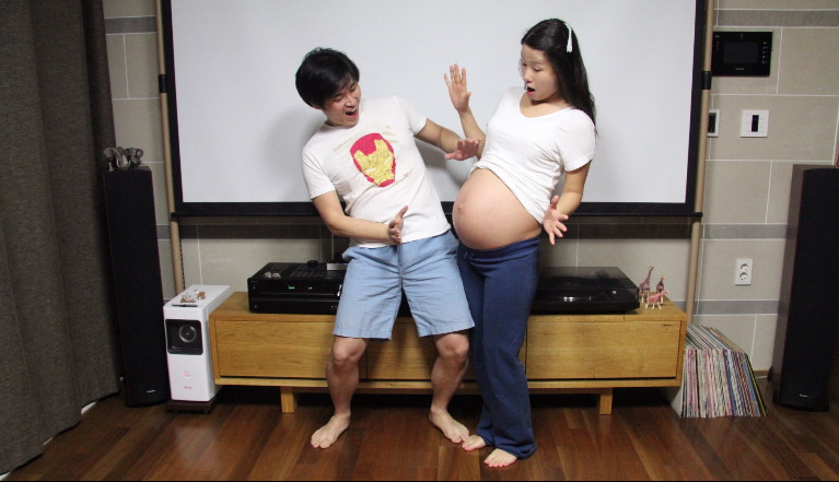 우리는 출산 전날에도 집에서 만삭 사진을 찍었다. 예정일을 며칠 앞두고 있으니 진짜 만삭이라며 한껏 부른 배를 사진에 담았다. 사진을 다 찍고 잠자리에 들려는데 양수가 터졌다. 우리는 그날 뱃속 아이와 함께 찍던 사진기를 들고 분만실로 들어가 아이가 탄생하는 과정을 카메라에 담았다. 지금도 그날은 잊을 수가 없다.