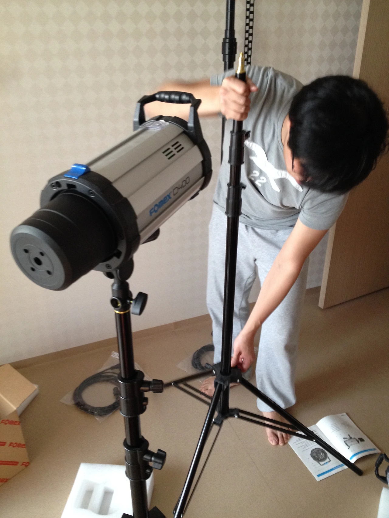 쇼핑몰 운영자에게서 사온 조명을 설치하는 남편.