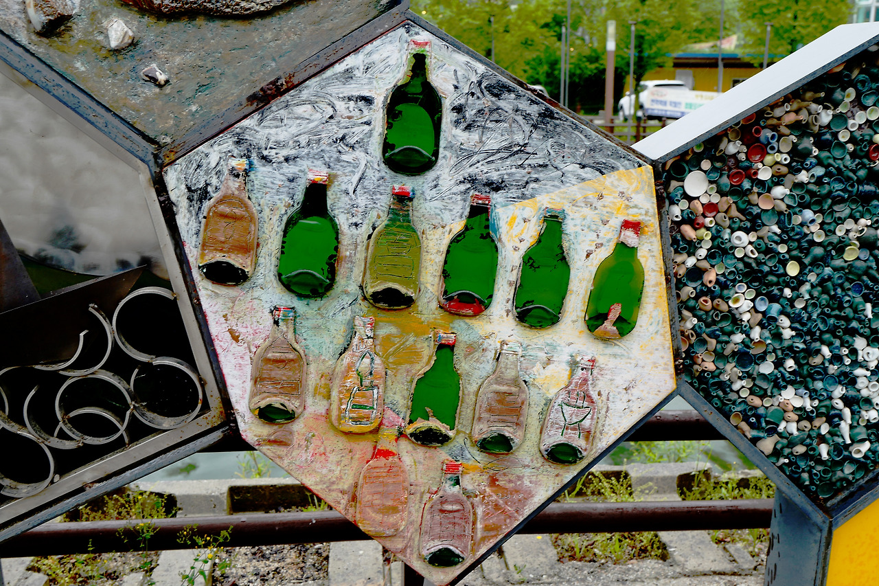 공원 안에는 선사시대의 고인돌을 연상케하는 거대한 바위를 포개 놓은 조형물이 보인다. 김종삼 시인의 시비이다.