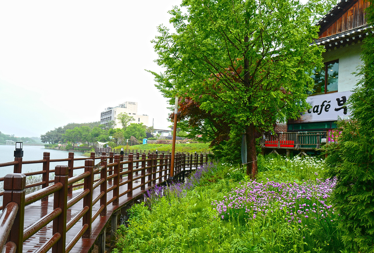 저수지이지만 호수로 부르겠다. 둘레길이 조성되어 있고 주변에는 크고 작은 카페들과 레스토랑들이 호수를 에워 싸고 있다. 부슬부슬 내리는 비와 물안개가 피어오르는 호수풍경에 봄날의 정취가 가득하다.