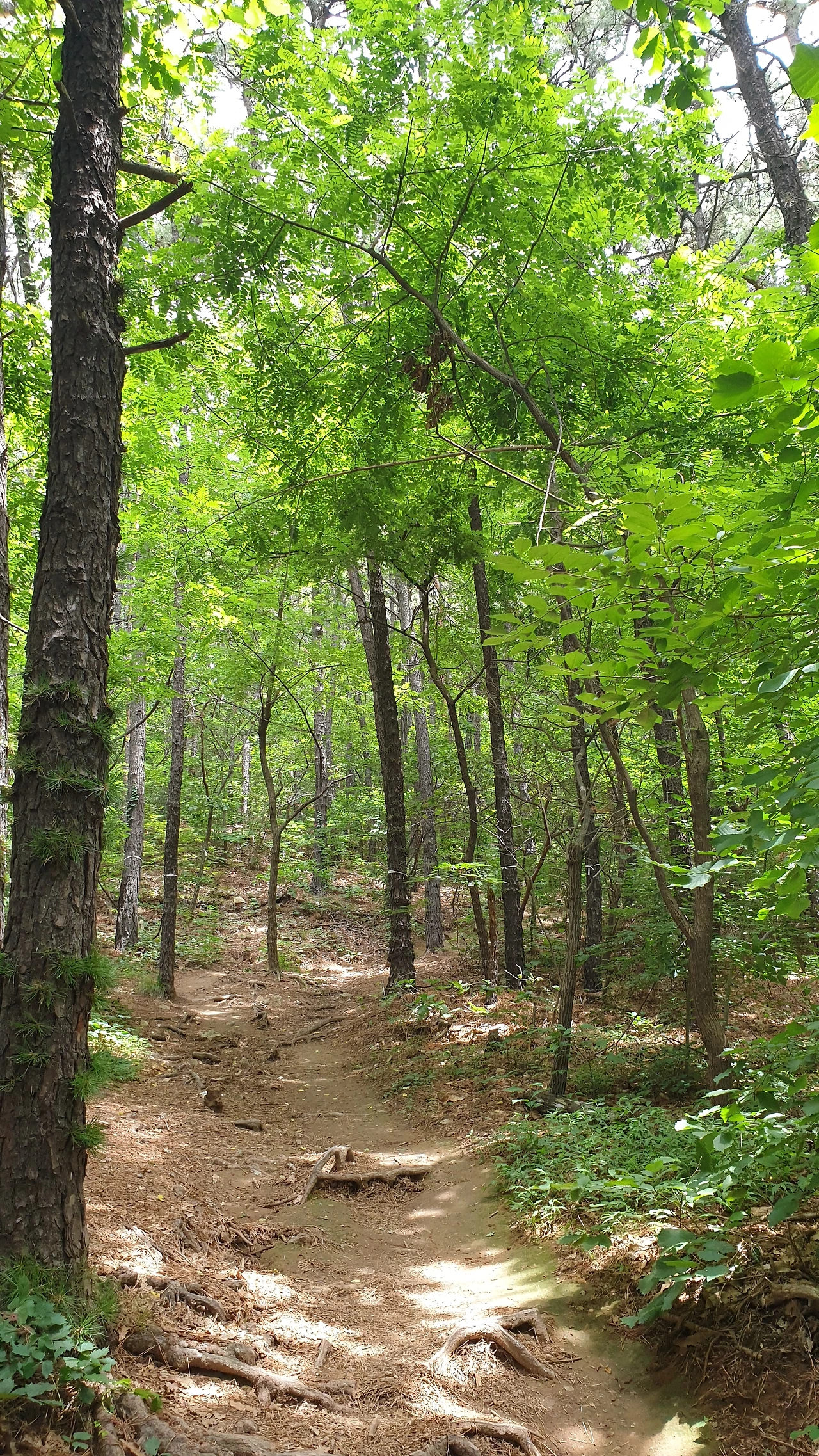 데크가 깔려있고 잘 다듬어진 공원 길과는 다르게 야산으로 오르는 길은 사람들이 별로 다니질 않아서인지 들쭉날쭉 나무뿌리가 걸리고 험하긴 했다. 한참 걸어도 마주치는 사람이 없을 정도로 한적해서 겁이 좀 나는 것도 사실이다.