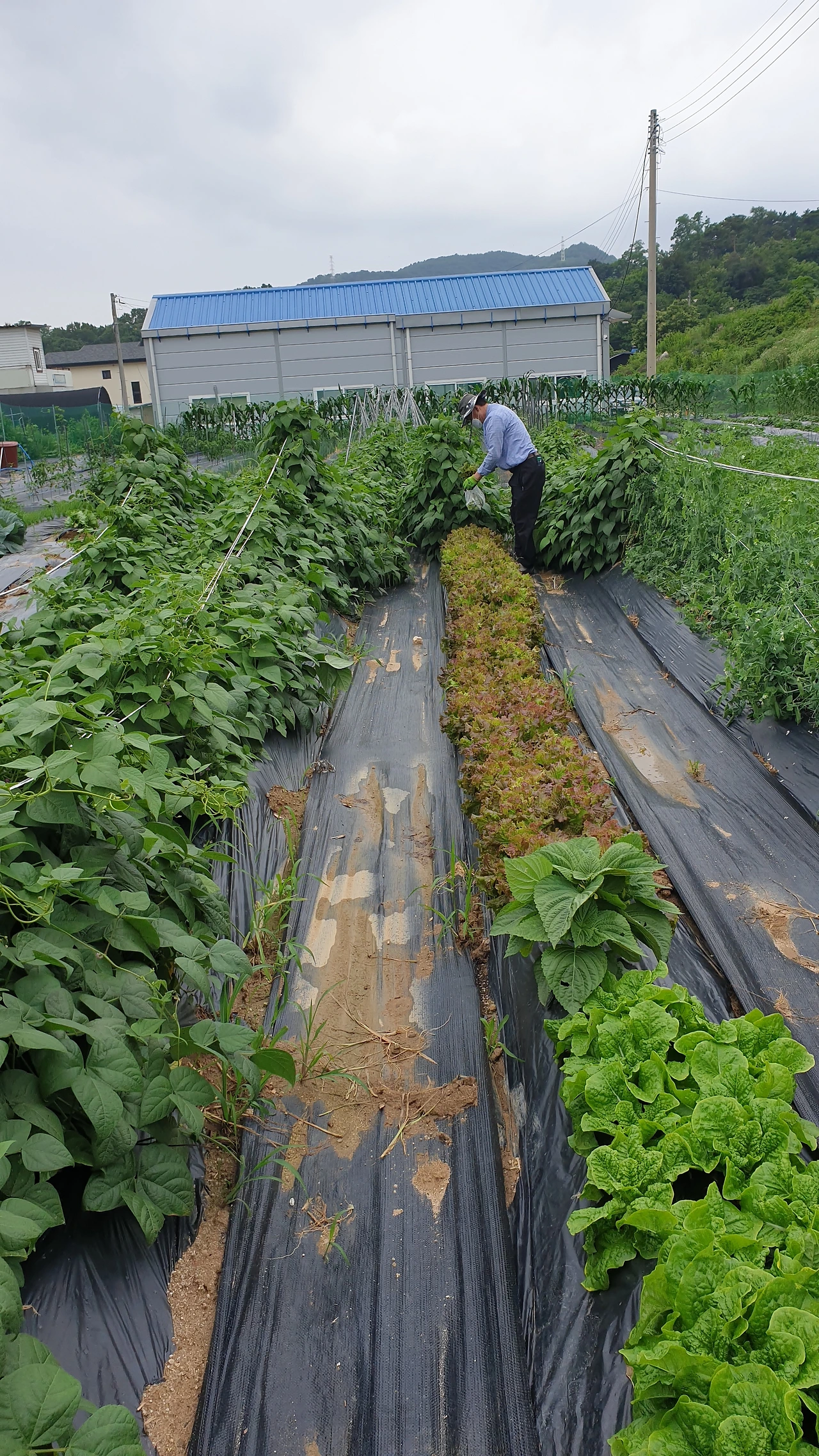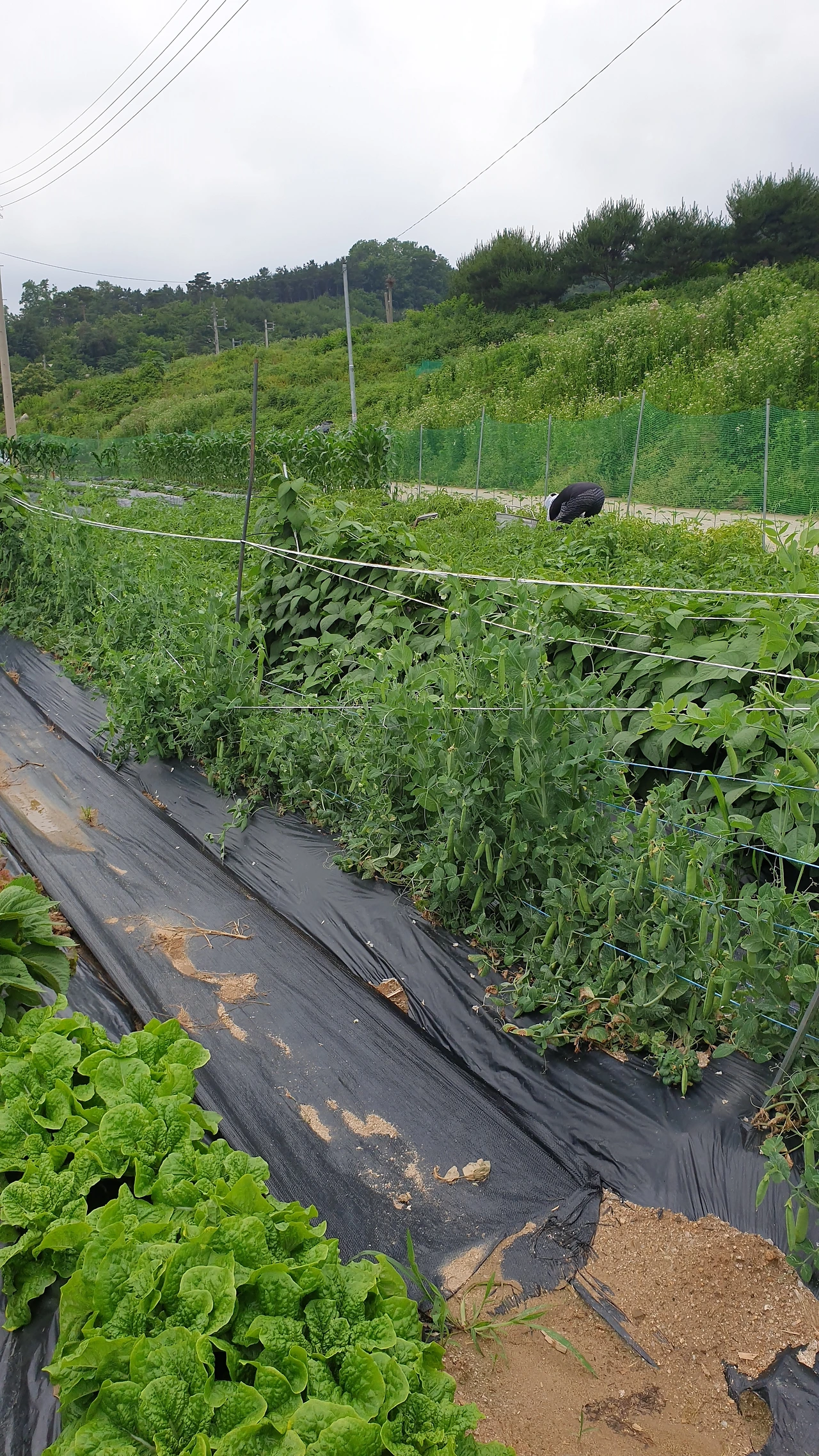 봄에 전문가가 포클레인으로 밭을 한바탕 갈아주고 잡풀을 막기 위한 비닐 멀칭까지 해주니 농사의 절반은 이미 먹고 들어간다고 보면 된단다. 일이 서툰 낭만 농부들에게는 희소식이겠지만 이런저런 비용을 빼면 농사로 얻는 소득은 거의 없다고 보면 되겠다. 아니 오히려 밑질 수도 있는 이 화려한? 취미생활을 포기하지 못하는 것은 아무래도 밭에서 금방 따온 채소들을 바로 먹을 수 있는 매력 때문일 것이다.