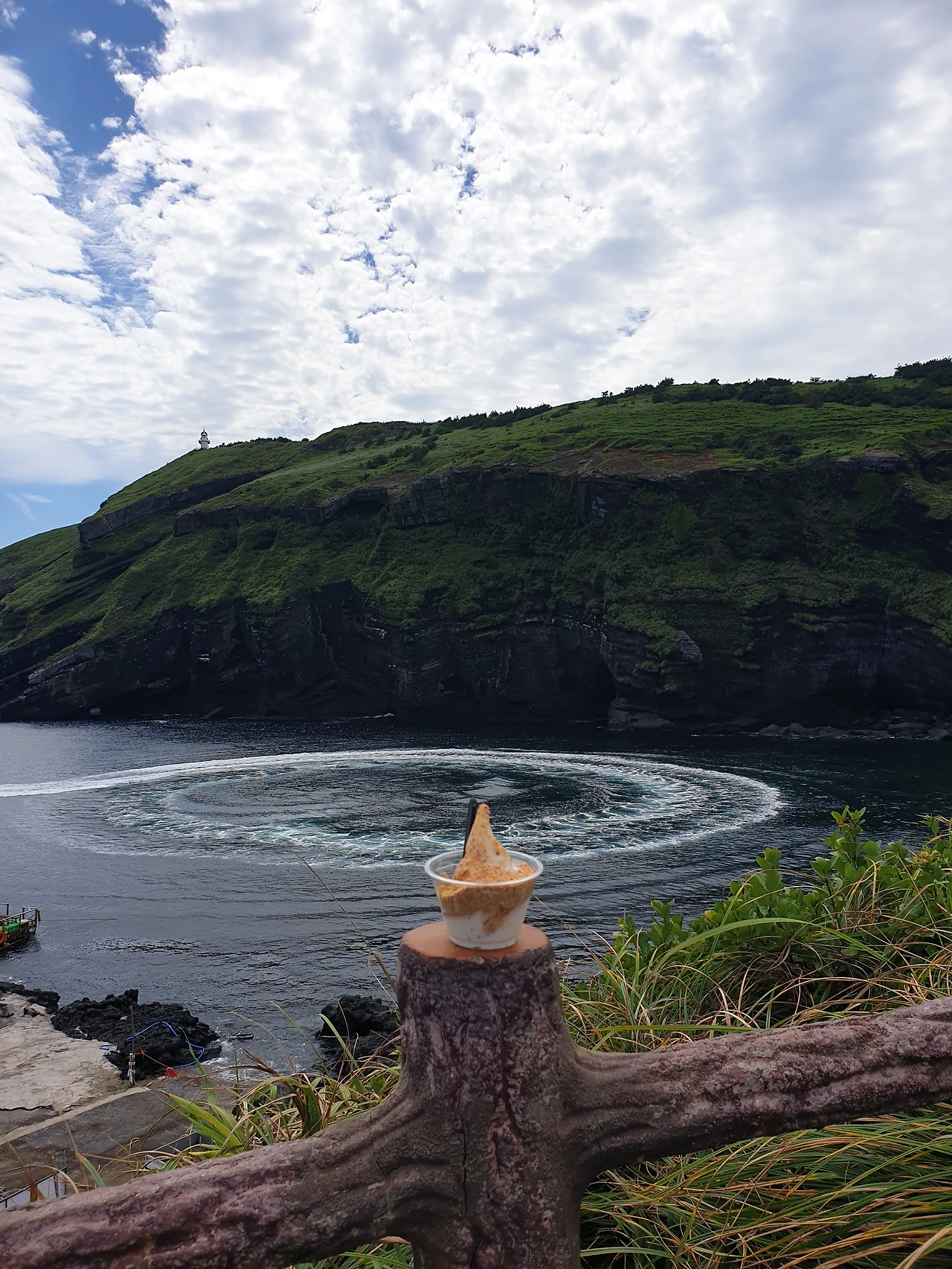 이 여행상품 구매를 결정한 것은 순전히 우도가 포함되어 있어서였다. 몇 년 전 겨울에 가서 보았던 우도를 여름에 본다면 더 좋을 것 같았기 때문이다. 그때 모터보트를 타고 들어가 보았던 동굴 속을 생각하며 기대에 차있었는데, 가이드는 우도에서 겨우 30분 남짓 시간을 주며 버스로 돌아오는 시간을 꼭 지켜주기를 당부하는 것이 아닌가.