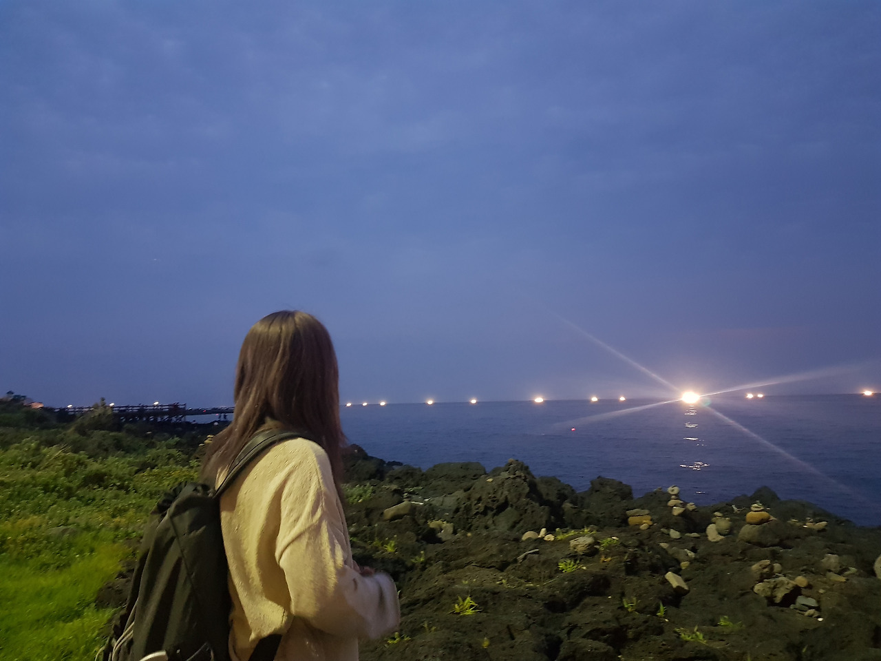 나도 모르는 사이 나에게 제주의 밤은 숙소에 들어가 쉬어야 할 시간으로 인지되고 있었다. 서울과 달리 밤이 되면 조금만 안쪽으로 들어가도 가로등 하나 없이 깜깜해서 가끔은 오싹한 기분이 들기 때문이다. 덕분에 쏟아지는 별을 감상할 수도 있지만 말이다. 그런데 제주의 밤바다는 '쏴아-' 하는 파도 소리 때문인지, 마실을 나온 주민들 덕분인지 어두워도 무섭지 않았다. 해변 카페에 앉아 바다를 바라보며, '저 깜깜한 너머에 바다가 있구나. 파도가 오고 있구나.' 생각했다. 바다 바람과 함께 파도는 향기와 감촉으로 다가왔다. 엄마랑 동생이랑 재잘재잘 이야기하다가도 아무 말 없이 눈을 감고 파도 소리에 귀를 기울이면 마음이 맑고 편안해졌다.