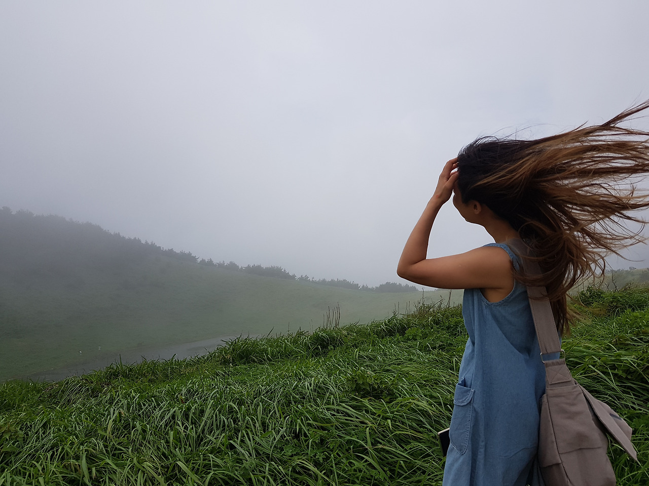 결과적으로 우리의 여행에서는 비보다는 강한 바람을 만났지만, 장마철 비 오는 날 제주를 방문하는 것은 미친 짓이라고 생각했었다. 크고 작은 오름, 산, 바다, 섬 등 제주의 자연을 쏘다니려면 맑은 날씨가 필요해서 비 오는 날에는 그저 습기 많은 방에 머무는 것밖엔 할 일이 없다고 생각했기 때문이다. 그리고 어쩌면 맑은 날 제주의 이미지를 그리고 온 사람들에겐 비 오는 제주는 큰 실망을 안겨 줄 수도 있다. 그렇지만 나는 이번 여행을 통해 너무 뜨겁고 더운 날 보다는 흐린 날 제주 여행이 훨씬 쾌적하다는 것을 깨달았다. 특히 흐린 날 산 근처에는 안개가 많이 끼기 때문에 맑은 날에는 볼 수 없는 신비로운 풍경을 볼 수 있을지도 모른다. 또, 비가 온 다음 날 폭포에 방문하면 시원하게 쏟아지는 물을 볼 수 있다.
