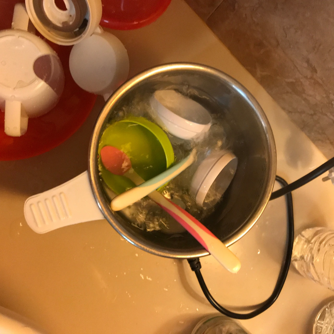 꾸따 비치와 걸어서 3분 거리에 있는 우리 숙소는 하루에 3만원이 조금 넘는 가격이다. 침대와 작은 냉장고, TV와 옷장이 있고 한쪽 벽에는 아기침대를 두었다(3만원에 아기침대를 제공해준다!). 화장실은 현재 화장실 본연의 역할 외에도 부엌과 세탁실로 사용되고 있다. 이곳에서 세수와 양치질은 물론 설거지와 아기 젖병 소독, 손빨래까지 하고 있다. 방 안에는 우리가 가져온 트렁크부터 이런저런 짐들이 쌓여있는데, 손에 집히면 뭐가 됐든 바로 먹거나, 던지거나, 찢어버리는 아이 때문에 대부분의 짐을 긴 선반 위에 올려두었더니 선반 위는 아수라장이 돼가고 있었다. 이런 상황에서 아이와 함께 나흘 정도 지내니 숙소가 점점 아노미 상태가 되었다.