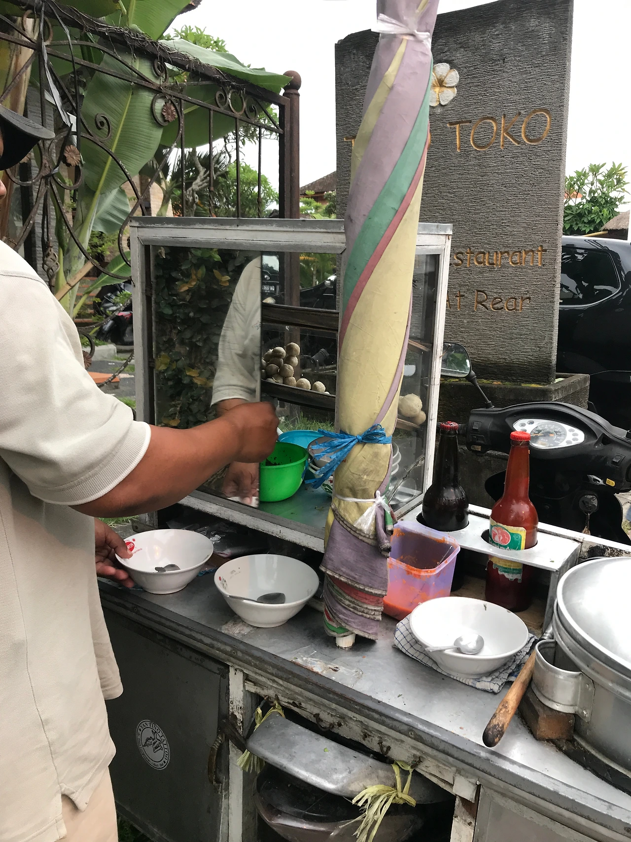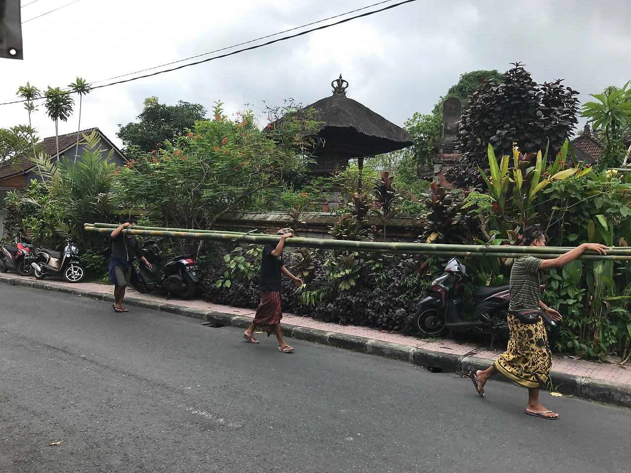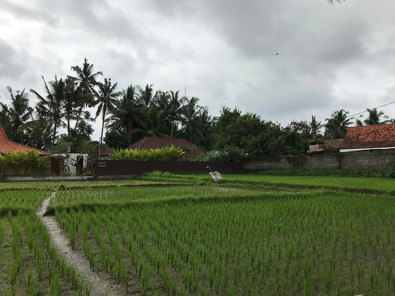 맛집 같은 건 안 찾는다는 게 원칙인 우리 부부지만 한국에서 손님도 왔으니 오늘은 맛있는 걸 먹으러 가기로 했다. 'Naugty's Warung'이라는 맛있는 립을 파는 곳이라고 했다. 구글로 찾아보니 숙소에서부터 도보로 40분 거리에 있었다. 뭘 타고 가야 하나 난감했지만, 일단 걸어 나가보기로 했다. 숙소에서 나와 어제와 반대방향으로 걷는 사이 생각지도 못한 풍경에 모두 놀랐다. 푸른 논이 길을 따라 넓게 펼쳐져 있고, 고랑 사이로 졸졸졸 시원하게 물이 흘렀다. 차도면서 인도이기도 한 우리가 걷는 길의 가로수는 크고 멋진 야자수거나 잎이 넓고 시원스런 열대 나무들이었다. 갑자기 나타난 다리 아래에는 놀랍도록 깊은 무시무시한 골짜기가 숨어있고, 중간 중간 나타나는 큰 저택의 대문은 화려하고 이국적이었다.