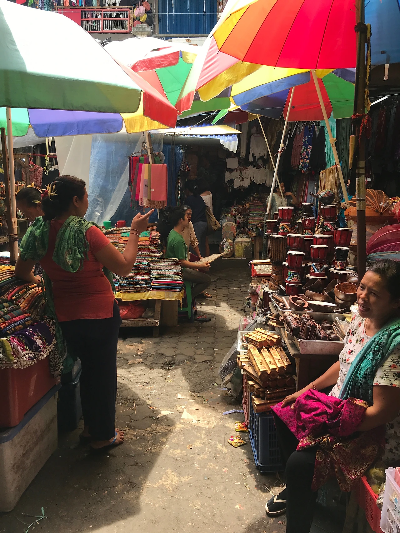 발리에 온 지 열흘이 지났다. 하루하루가 빈틈이 없다. 단호는 엄마의 손길이 매 초마다 필요하다. 아이를 보면서 발리를 봐야 하고 그러면서도 뭔가 생산적인 일을 해야 하지 않을까 하는 부담감에 시달리다 보면 하루가 틈 없이 꽉 차 버리고, 밤마다 기절해서 잠이 든다. 오늘은 생산적인 활동을 위해 우붓 시장에 다녀왔다.