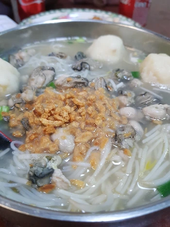 우리가 못찾고 우왕좌왕하자 가게 앞에 파란 티셔츠 입은 아저씨가 건너편에서 부르시더니 손으로 간판을 가르키시더군요. 보니 신무이 굴국수집이었어요.