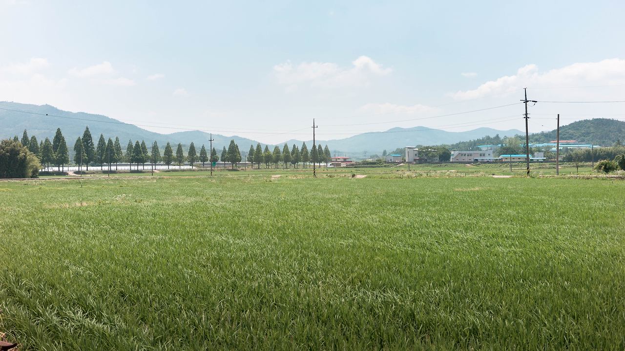 조용한 마을 1차선 도로 양 옆으로 나란히 서있는