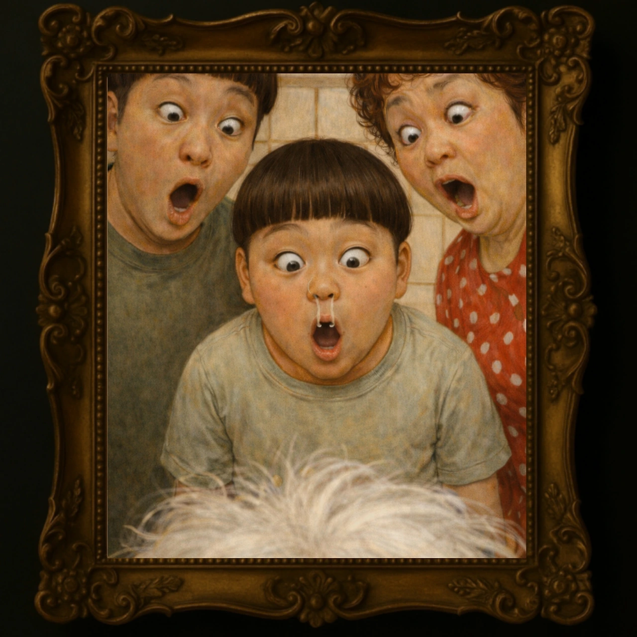 “뭐 뭐를 머리에 뿌려? 희한한 게 태어났어!"