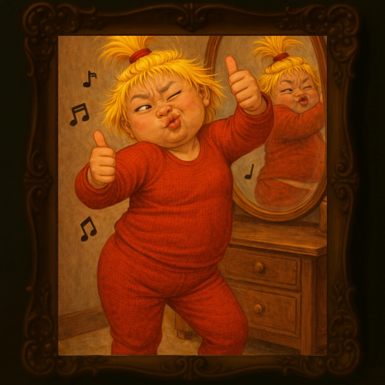 잔뜩 긴장하며 쓱 거울을 봤다.