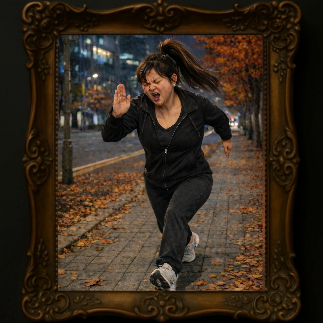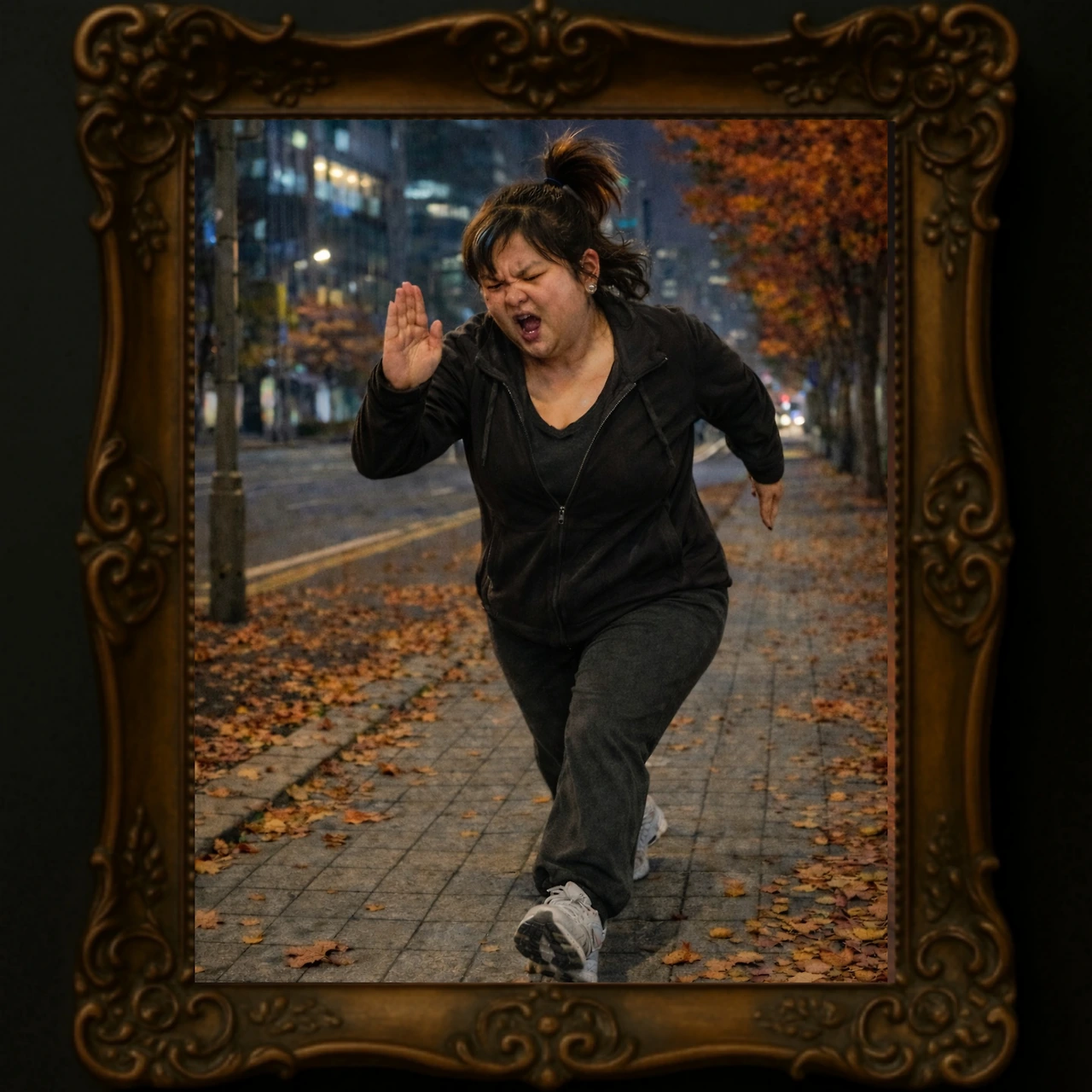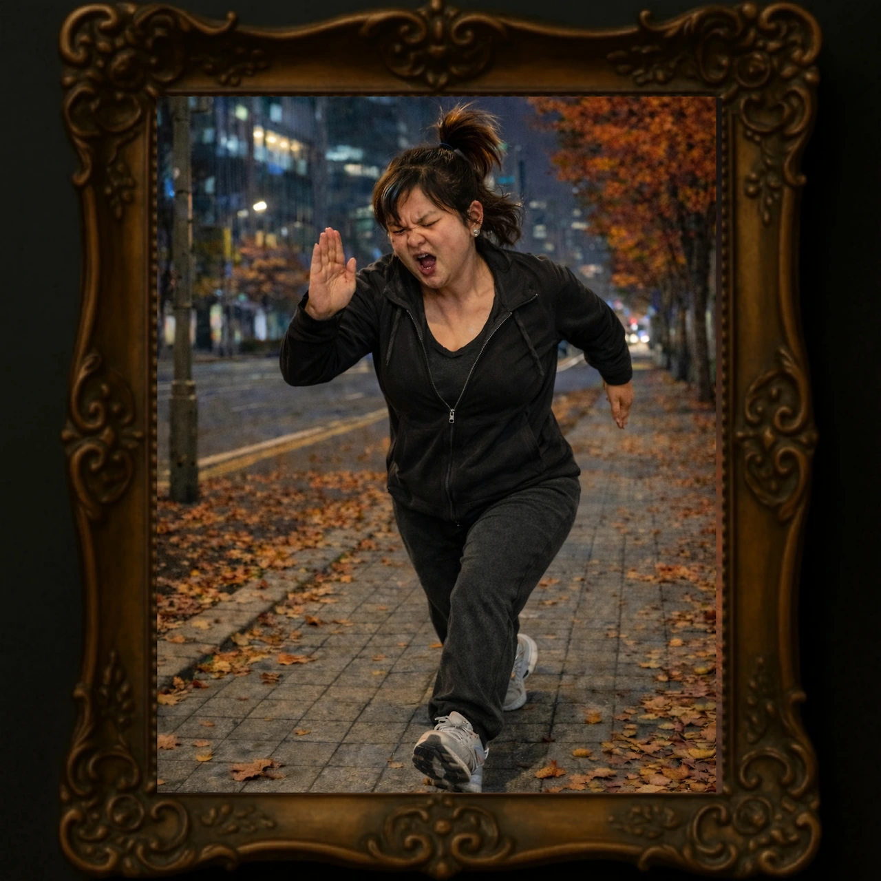 손은 손날처럼 세워져 있고, 미간은 자동으로 잠겨 있고, 엉덩이는 왜인지 늘 뒤로 빠져 있다.