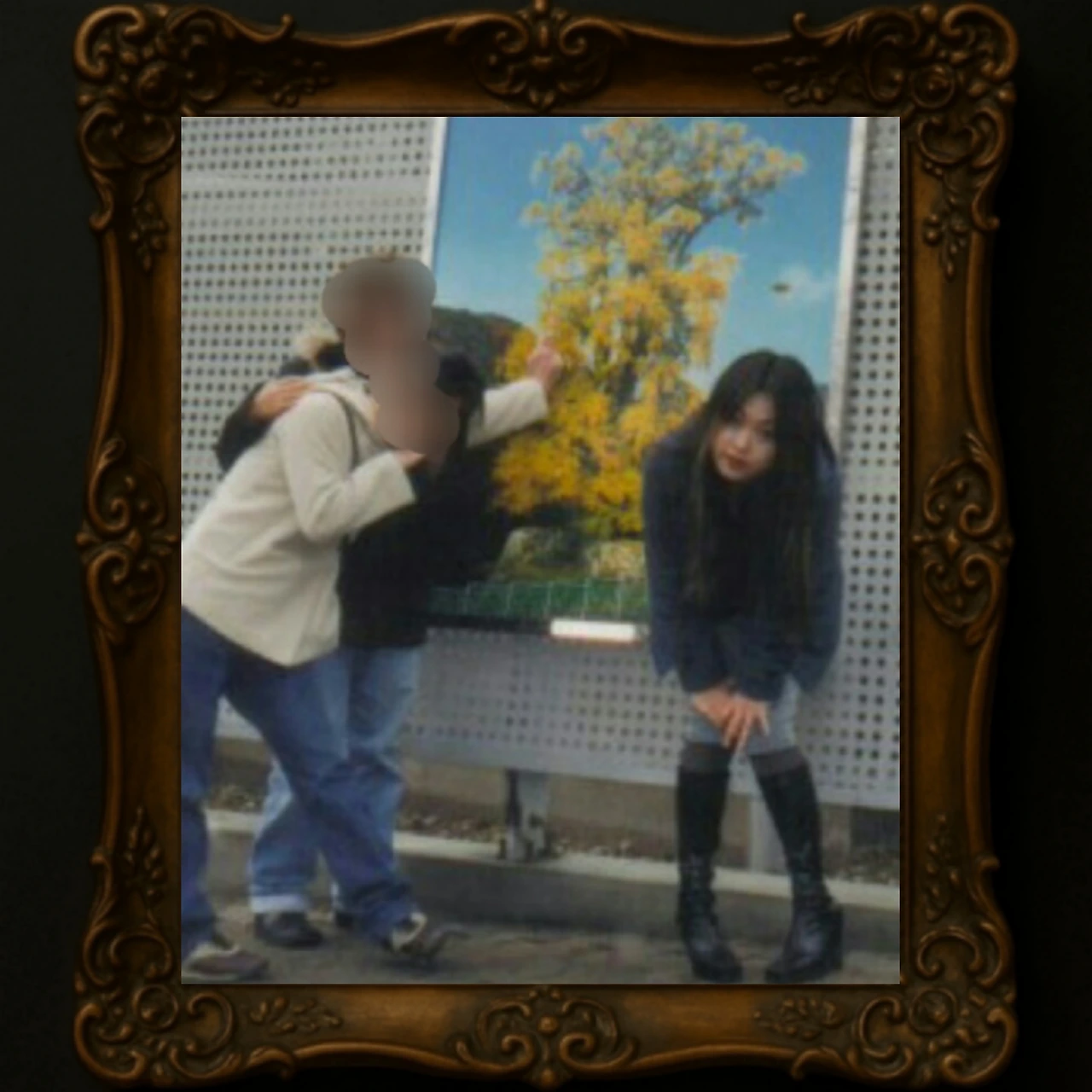 겨울날 산에 갔는데 혼자 부츠 신고, 청치마 입고. 쯧...