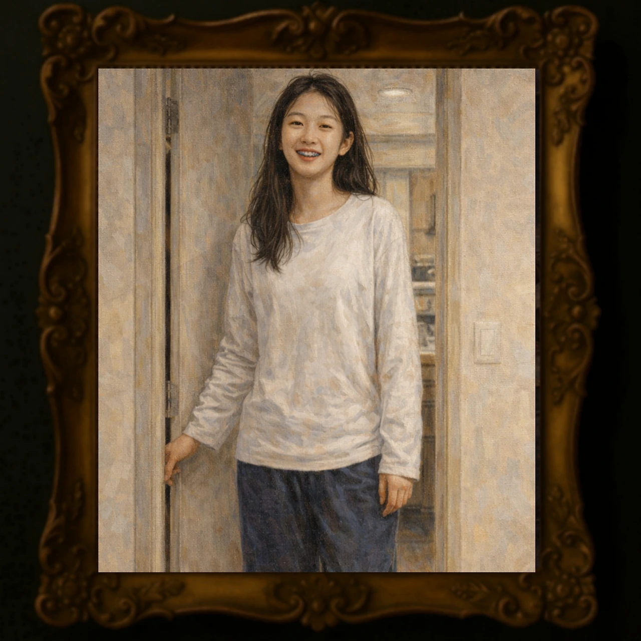 이빨엔 교정기가 반짝였다.