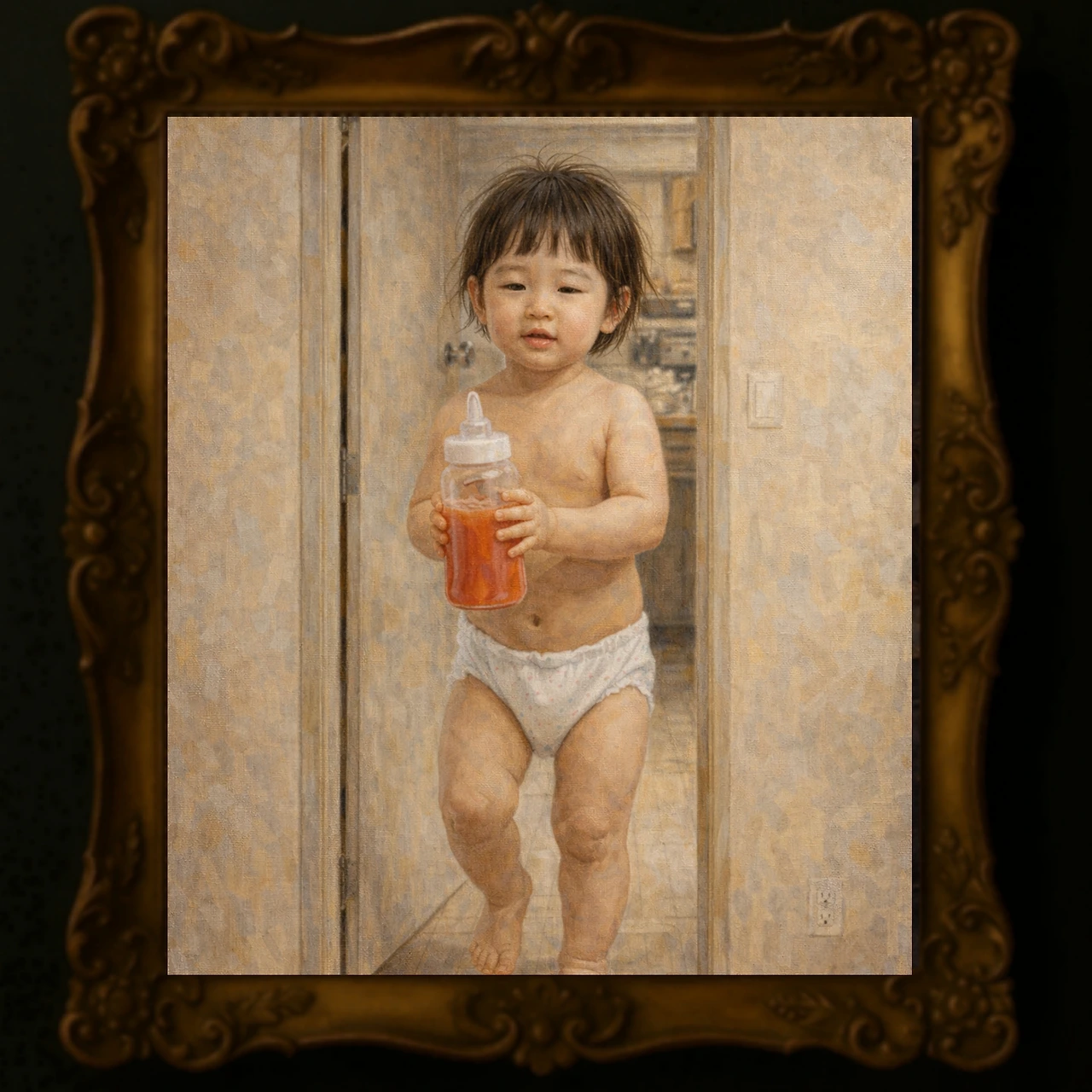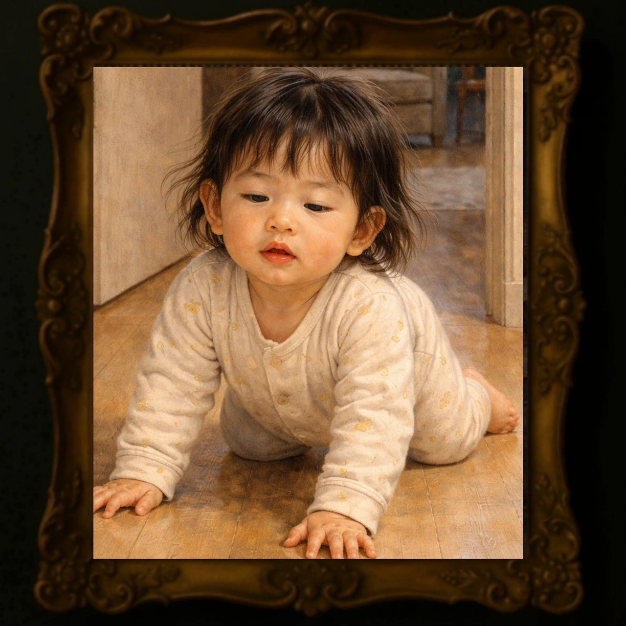 스멀스멀 막내 여자아이가 기어 나왔다.