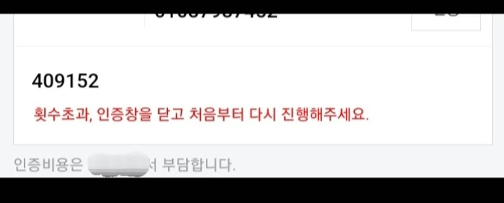인증번호 누르기도 전에 횟수 초과돼버려서 막혀버렸어"