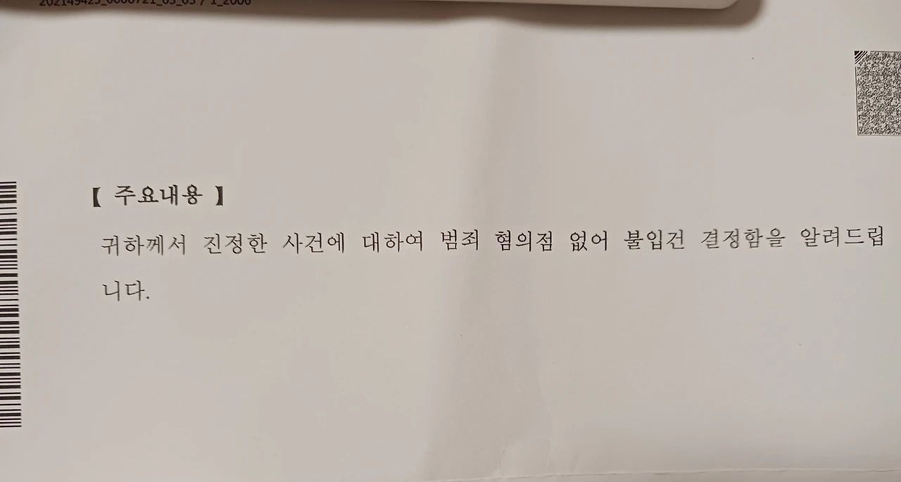 접수를 마친 며칠 뒤, 등기 우편 한 통이 도착했다.