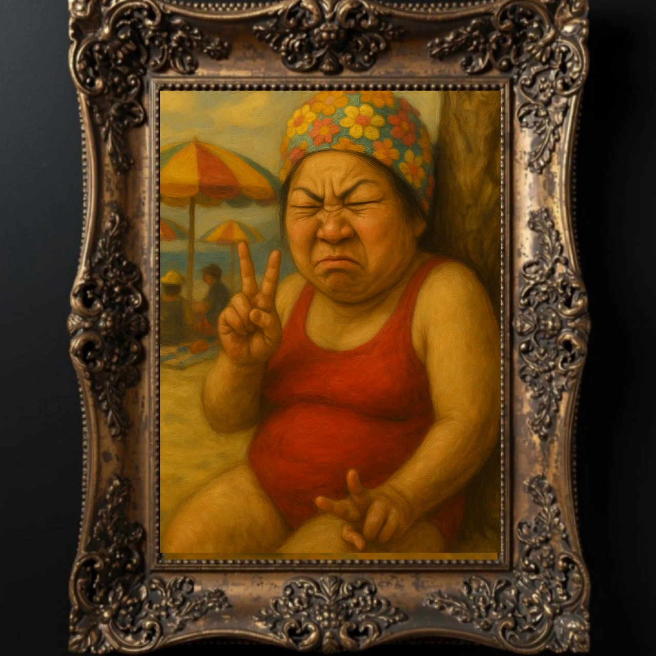 뚱뚱한 몸을 양손 V로 가리긴 역부족이었다.