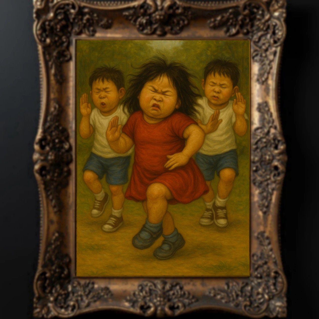 '즐겁게 춤을 추다가 그대로 멈춰 랏!"