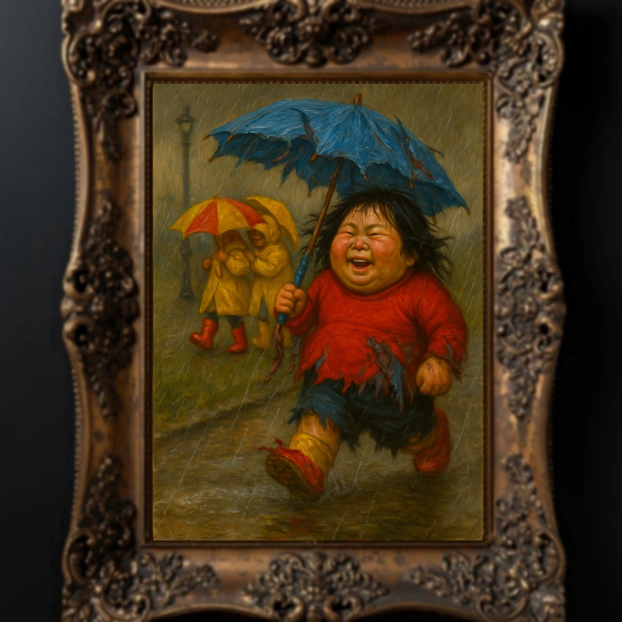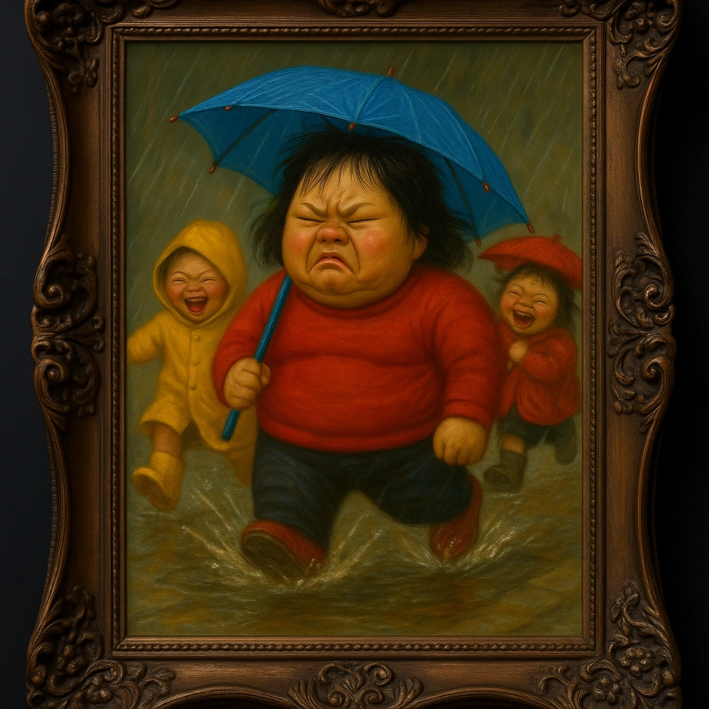 ‘나도 비 올 때 엄마 슬리퍼를 신고 와야겠다.’