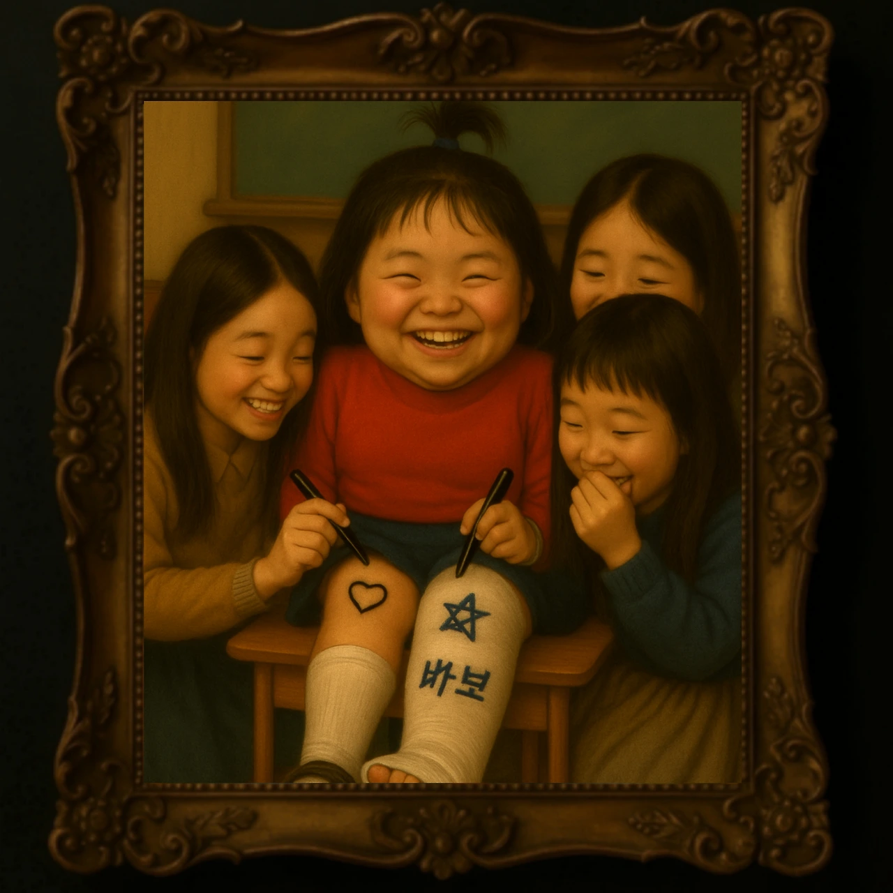 학교에선 깁스를 본 친구들이 웅성거렸다.